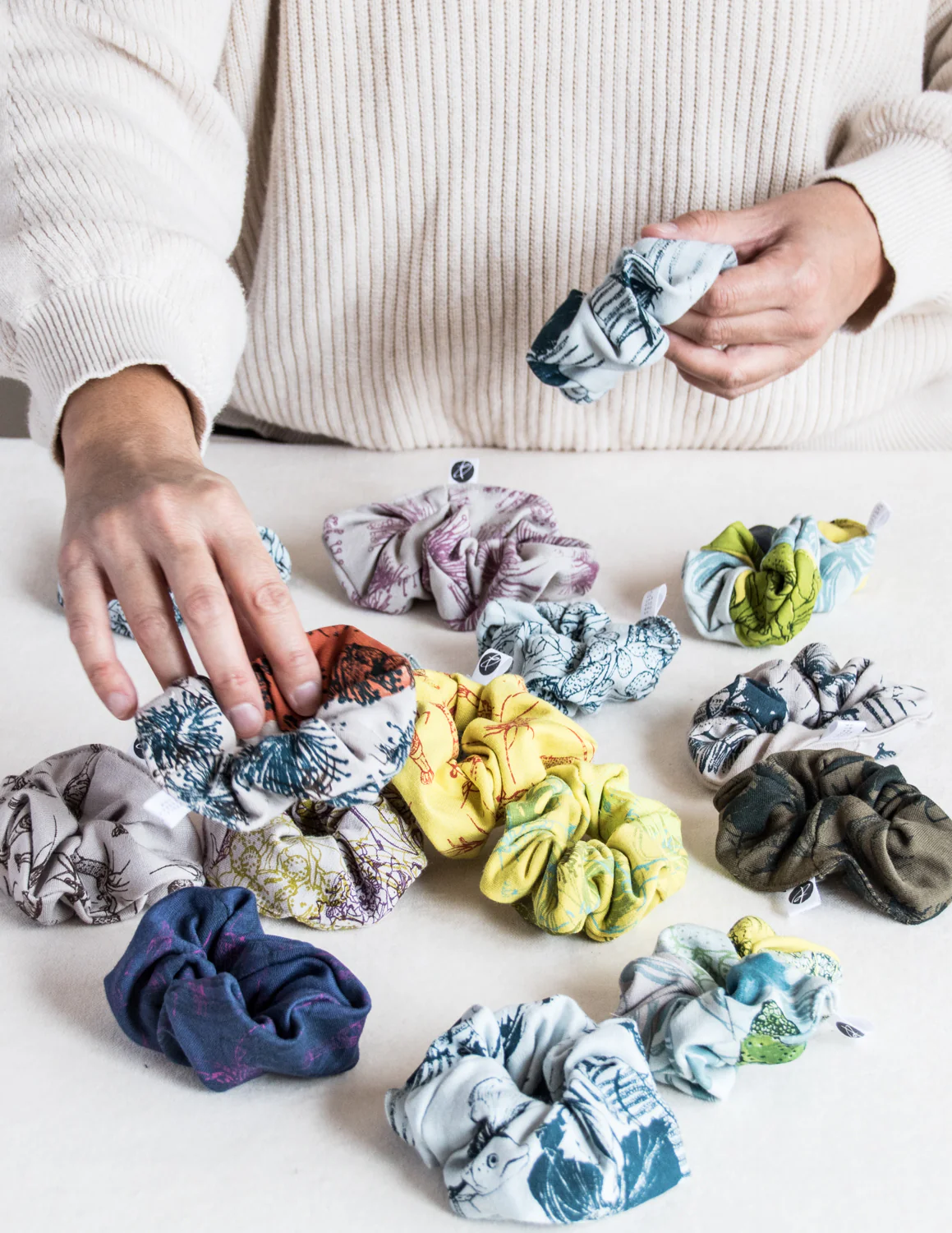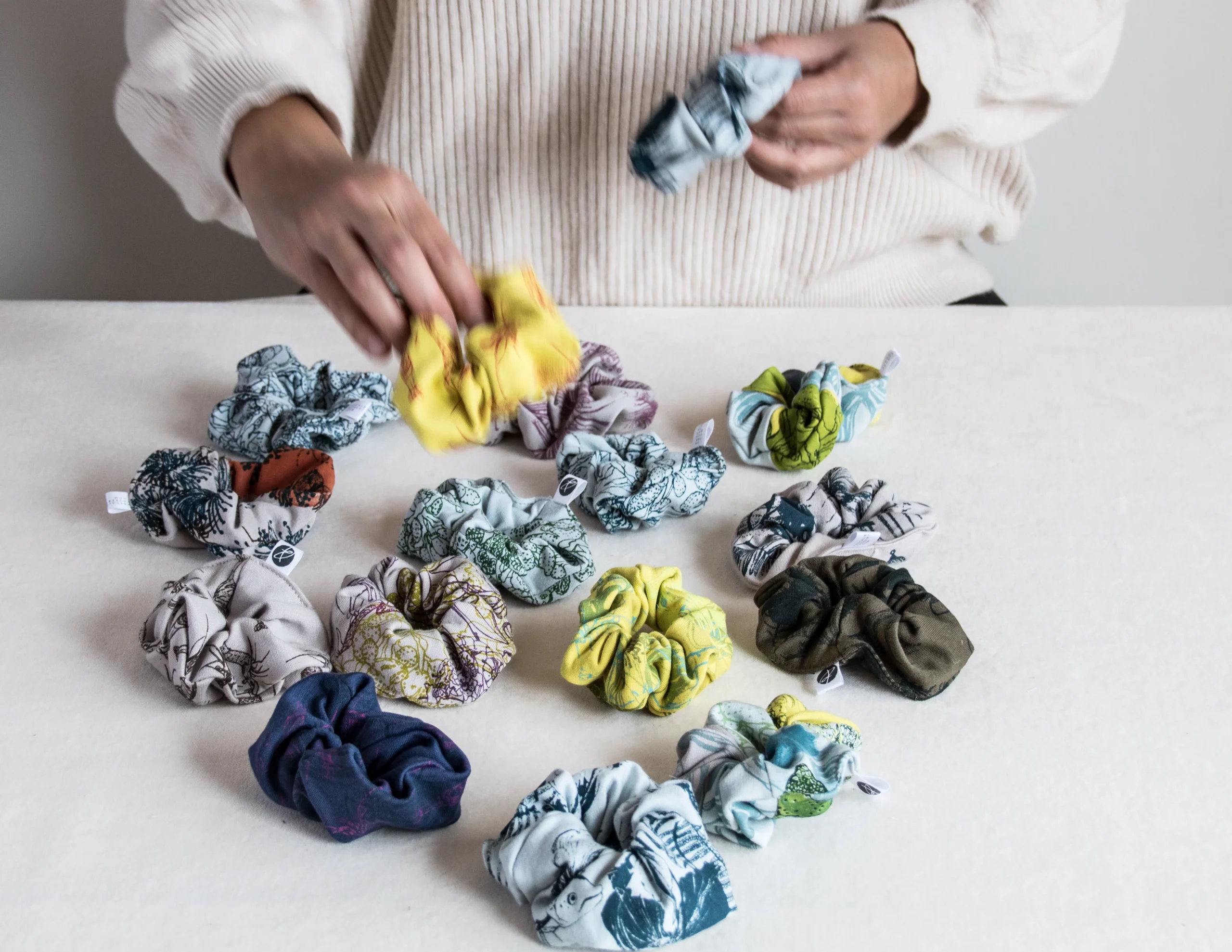 Nos chouchous surcyclés sont issus des retailles de nos bandeaux. Il est donc impossible d’en trouver deux pareils, ils sont uniques.