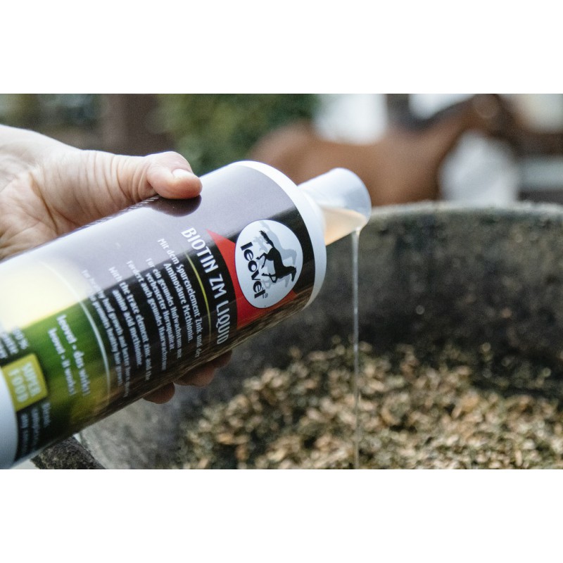 Dose : Dose journalière 20 ml (20 mg de biotine) pour un cheval de 600 kg. Pour les petits gabarits et les poulains, administrer 5 ml pour 150 kg. A consommer dans les 8 semaines après ouverture.