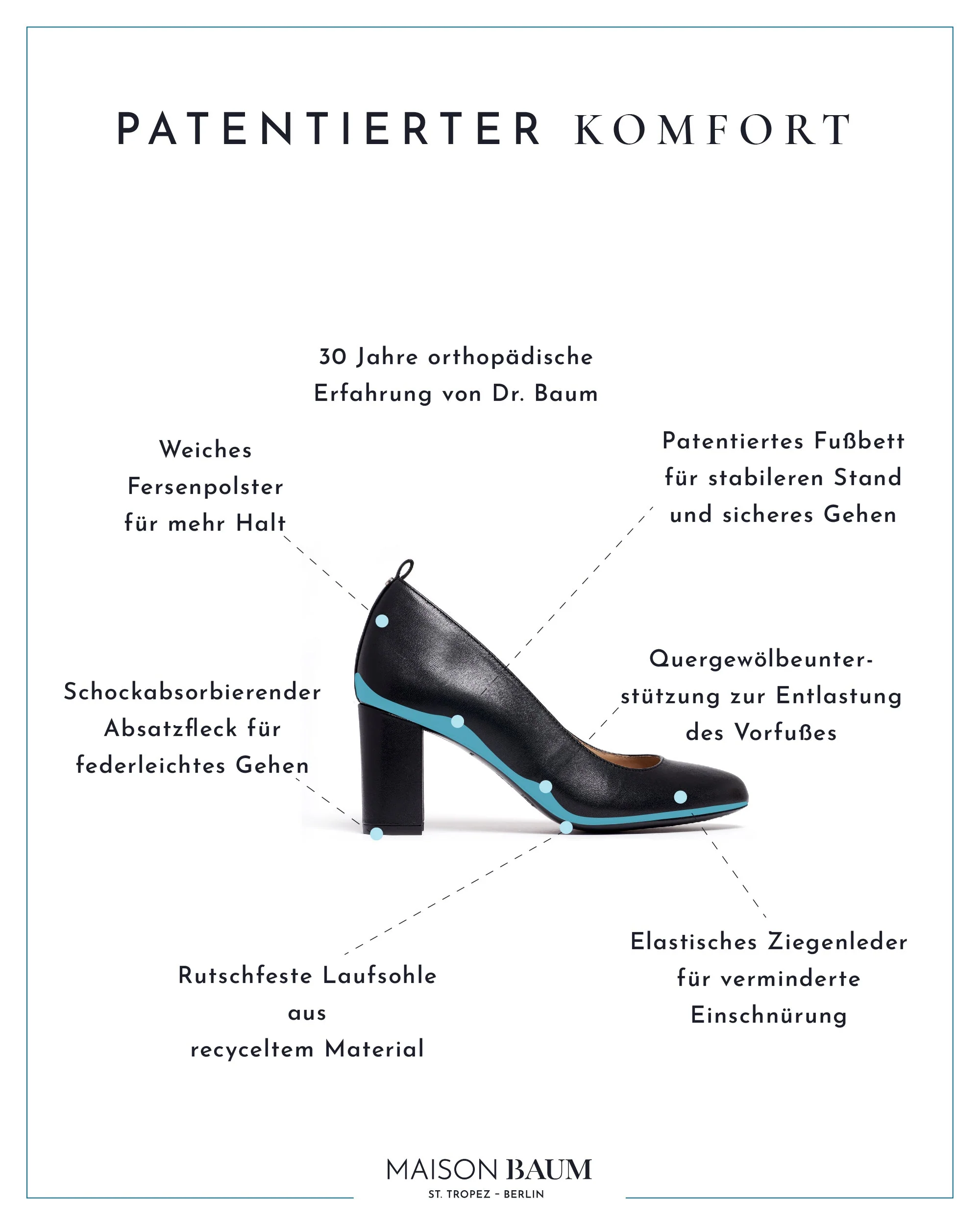 Arsenic est à la fois simple et élégant. On les aime pour ça ! Le bout en forme d’amande et la semelle intérieure brevetée Maison Baum assurent un confort inégalé, même lors de longues journées. Avec son talon bloc de 7 cm, vous vous sentirez toujours en sécurité et en confiance ! Que ce soit au bureau ou pendant votre temps libre, Arsenic peut être porté aussi bien avec des tenues business qu’avec des jeans décontractés. Les deux paires de brides de cheville apportent également ce petit plus et de nombreuses possibilités de port.