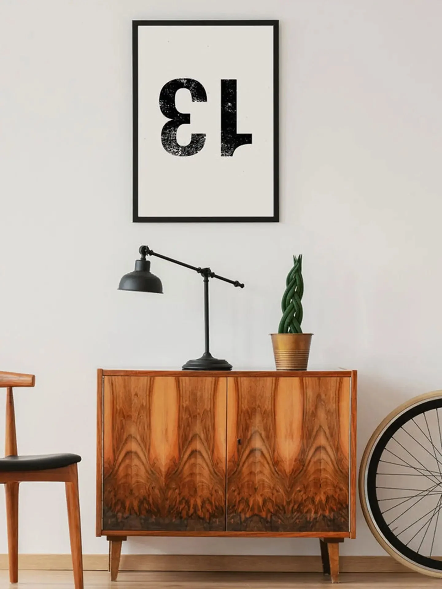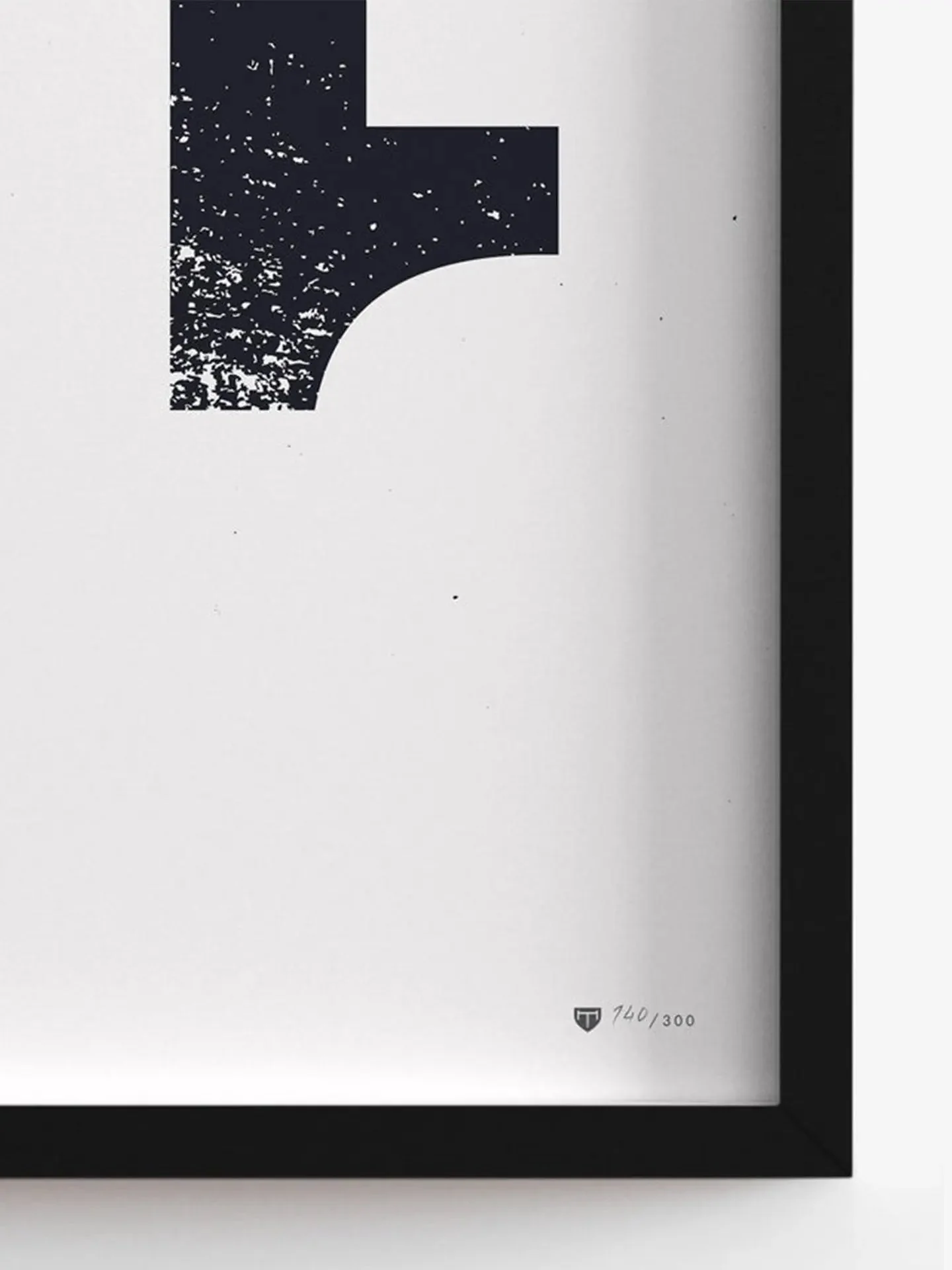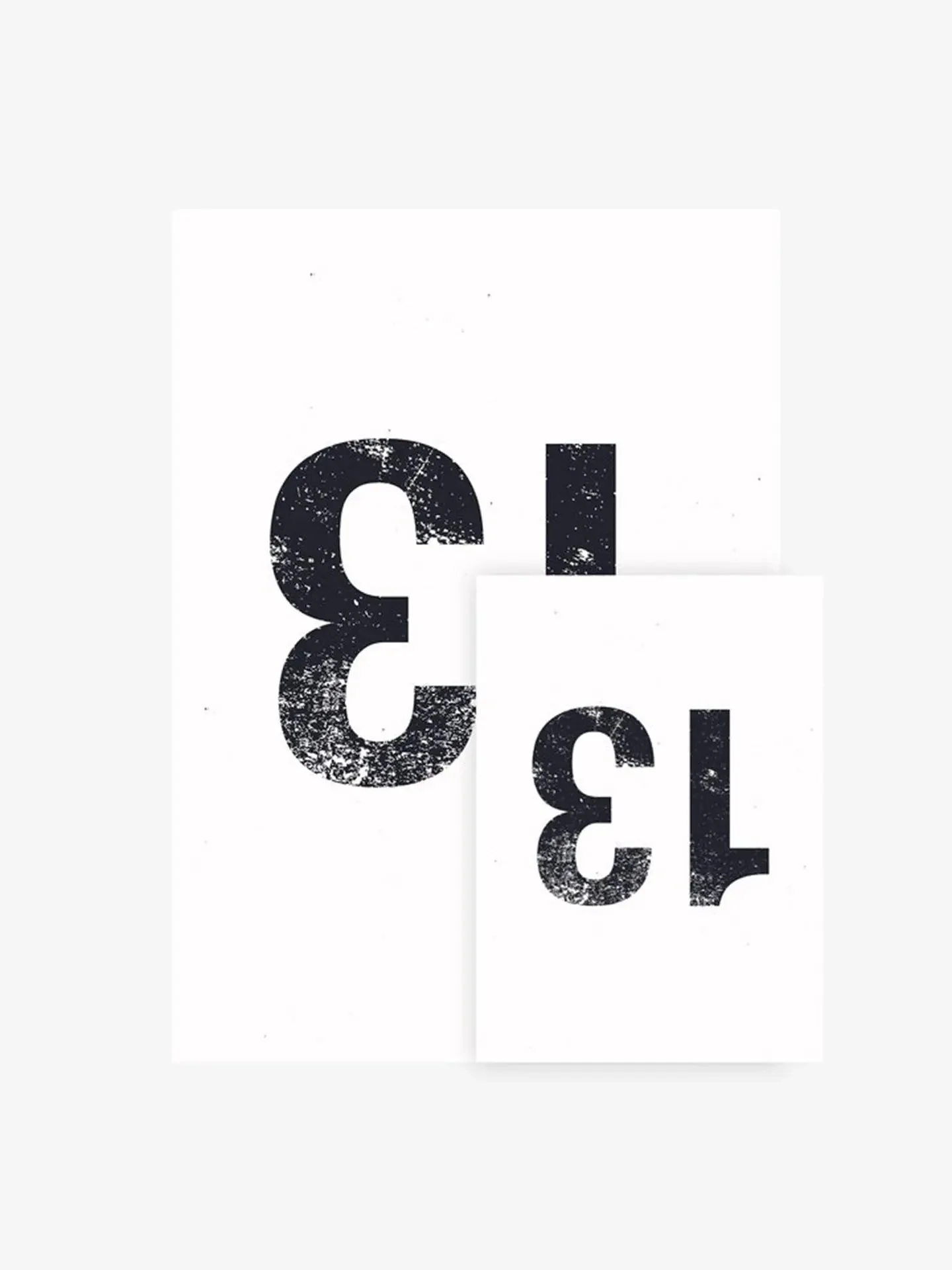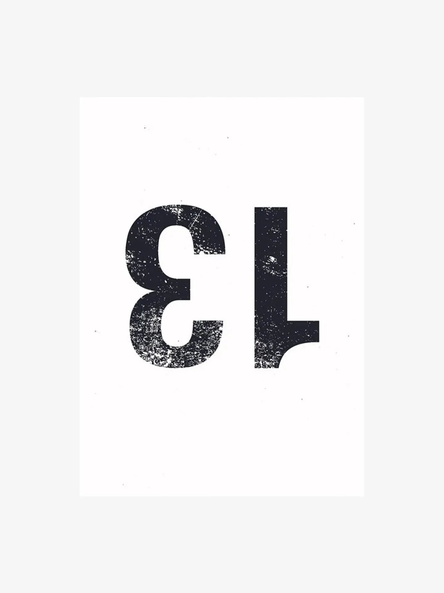 Poster inspired by cycling superstition: bib number 13, worn upside down to avoid tempting fate. A bold nod to the peloton’s quirky traditions.