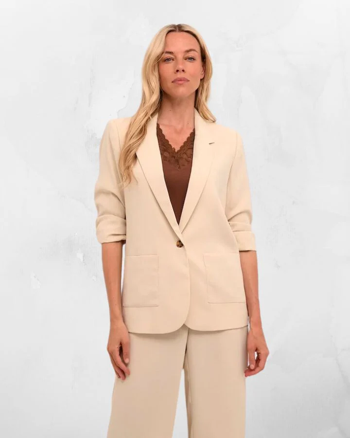 Veston Intemporel Ce veston est un incontournable de votre garde-robe. Avec sa coupe élégante, son col à revers et ses manches légèrement froncées, il apporte une touche de sophistication à toutes vos tenues. Que ce soit pour une occasion formelle ou un look décontracté, ce veston s’adapte parfaitement à tous les styles.