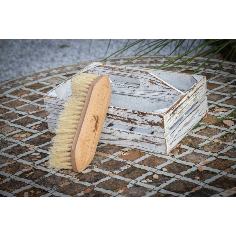 Bouchon à poils longs Pénélope et dessus en bois avec le logo Pénélope marqué dans le bois. Les poils sont longs et souples pour brosser sans irriter.