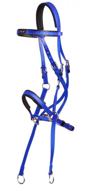 Bridon Bitless Zilco (Inox) : C’est un style cross-over bride sans mors. Bridon basé sur le modèle Bridon-Licol Marathon avec nid d’abeille sur têtière et muserolle réglable avec bouclerie en Inox. Deux anneaux pour attacher les rênes. Muserolle ajustable