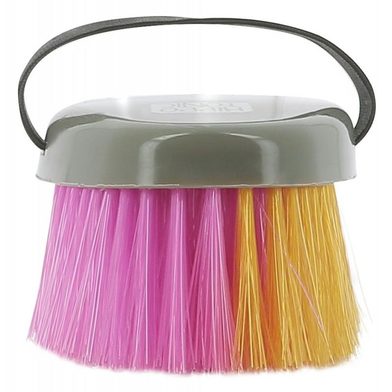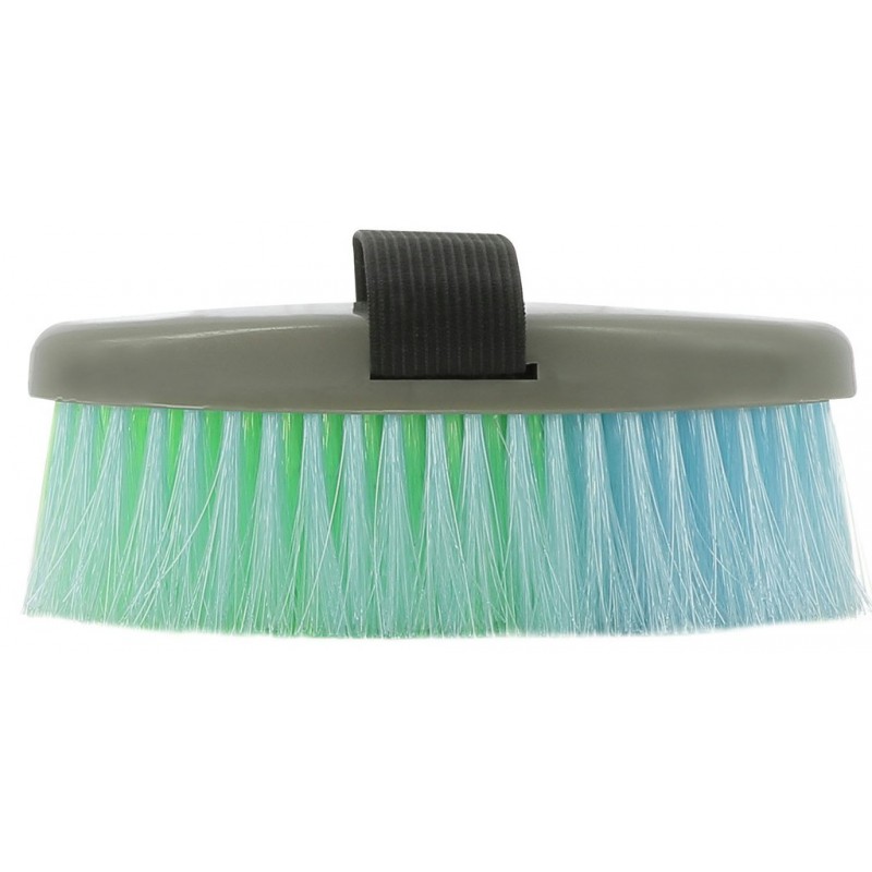 Associez cette brosse douce à un bouchon adapté pour un nettoyage complet et soigné. Offrez à votre cheval un soin efficace et coloré !