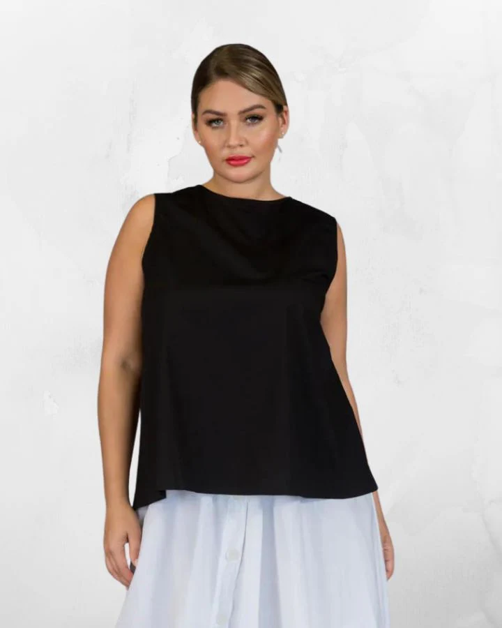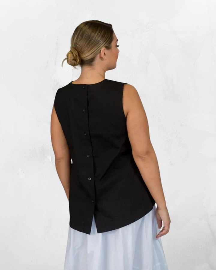 Camisole ample. encolure ronde, ligne A, boutonnage pleine longueur au dos.