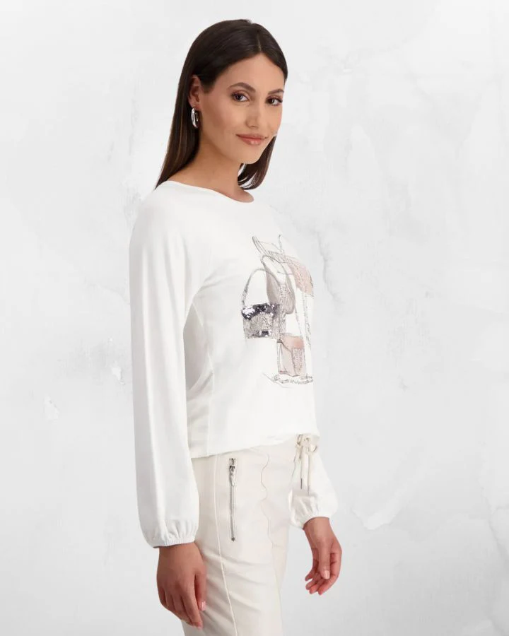 Chandail élégante en matière douce avec imprimé de Sac à main et strass.