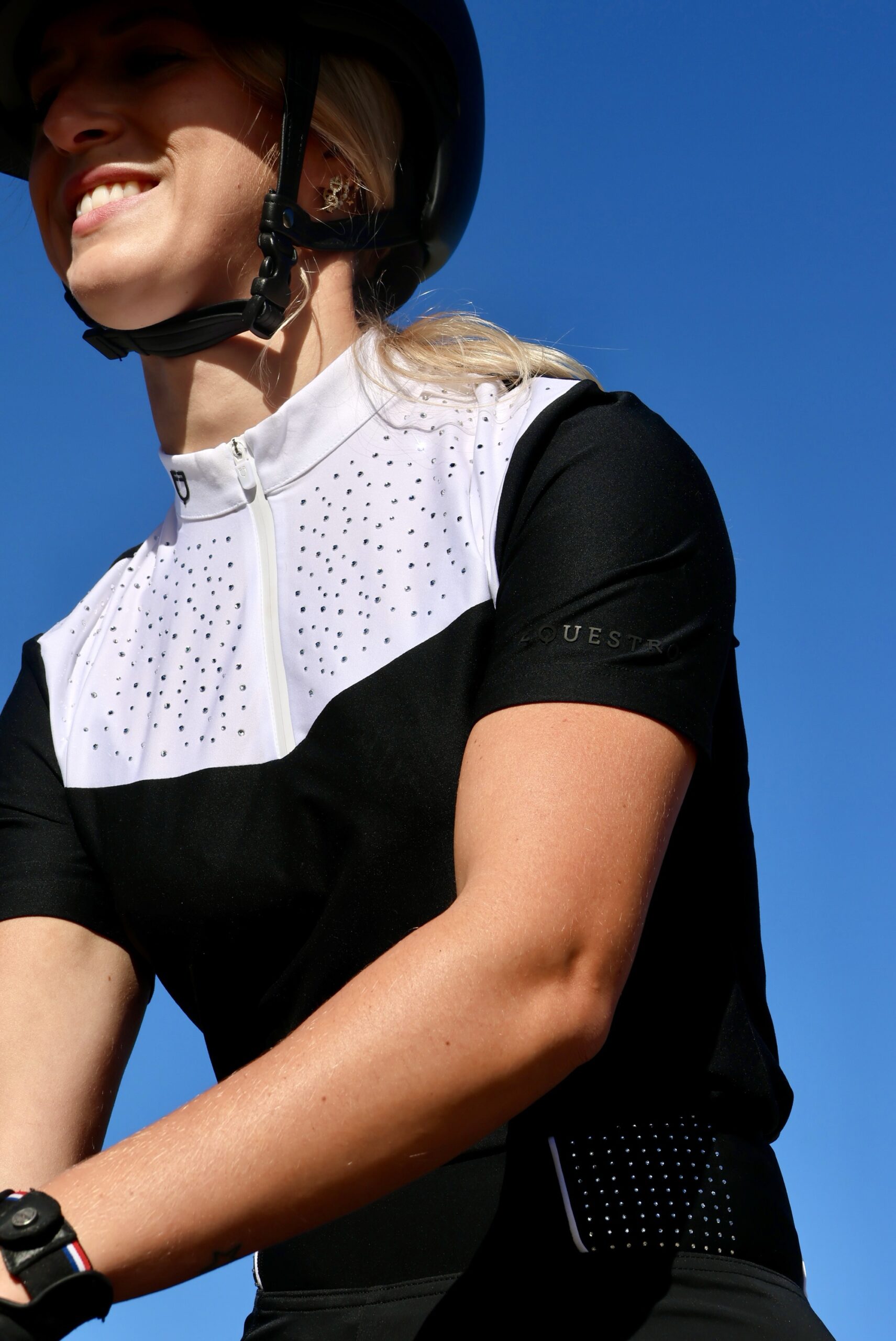 Chemise de concours Equestro manches courtes avec strass – Performance et élégance féminine