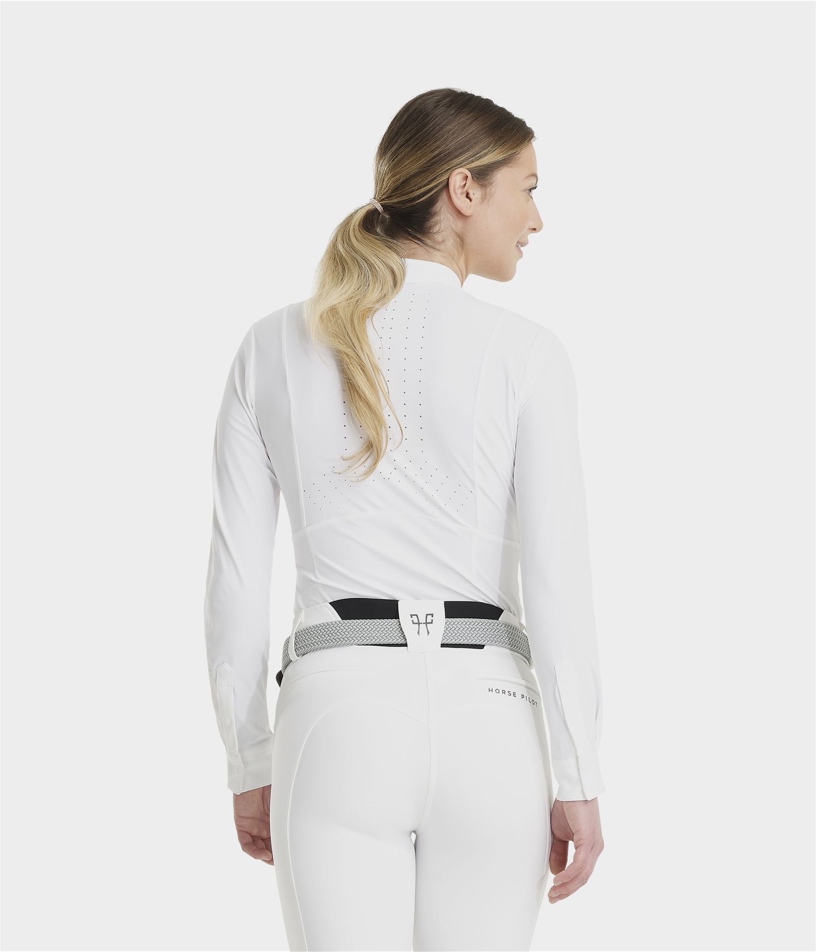 Chemise Femme Aerolight Blanche Horse Pilot : La chemise Aerolight est un vêtement léger et très respirant pour la compétition. Sa matière bi-stretch et sa forme ergonomique permettent une grande liberté de mouvements. Être à l’aise en toutes circonstances : Matière stretch sur le bas des manches pour une liberté de mouvement optimale..Comme une seconde peau : Matière bi-stretch et découpe ergonomique pour s’adapter à la posture du cavalier à cheval.