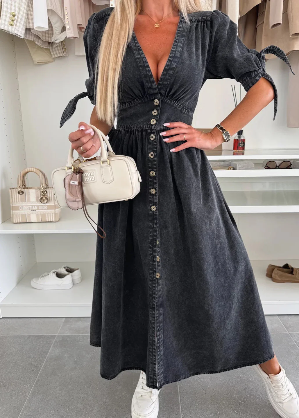 Alice ~ Robe unie avec fermeture boutonnée confort