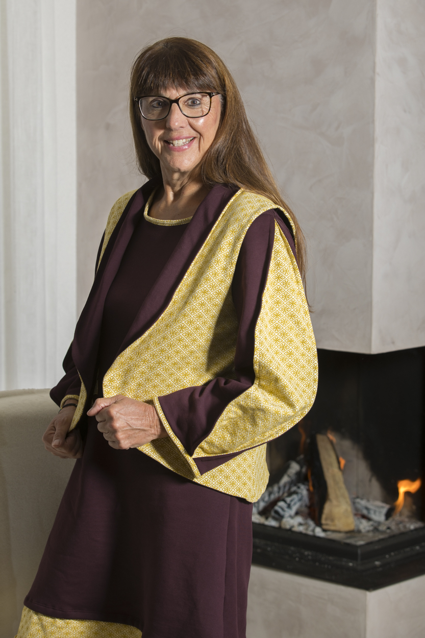 Ce gilet sans manche, faisant partie de la collection Au coin du feu, est parfait pour apporter une couche supplémentaire de chaleur sur un pull ou une robe en jersey fin, de la même collection ou non, et pour parfaire votre tenue en couleur. Disponible en jaune ou bordeaux dans un Jaccard aux motifs d’étoiles scandinaves stylisées, il est pensé pour être porté ouvert, amenant une superposition à votre tenue qui donne de suite du style et de l’élégance simple, qui se prête autant pour le quotidien que pour des soirées.