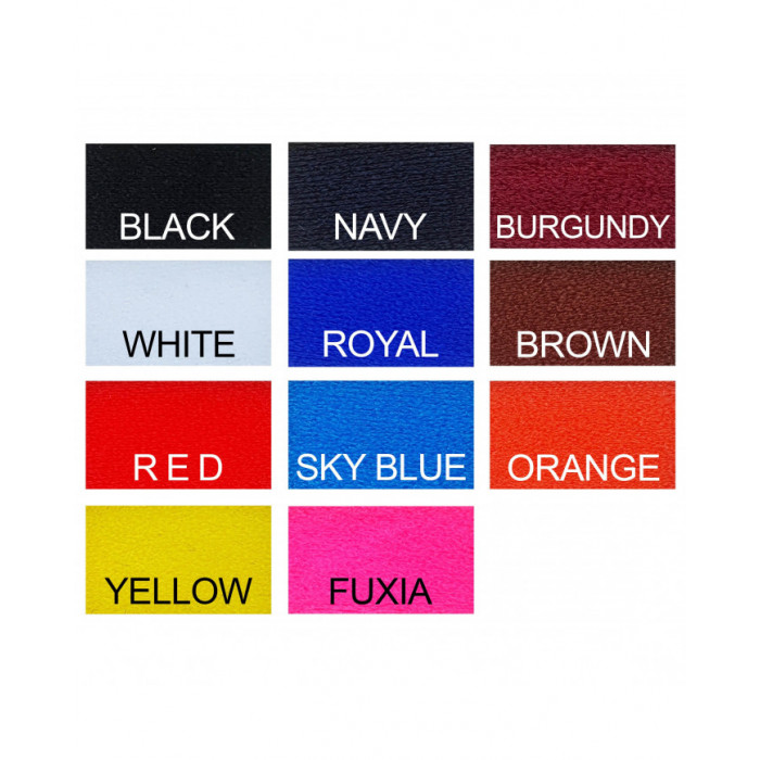 | Couleur | Blanc, Bleu ciel, Bleu marine, Bleu royal, Bordeaux, Fushia, Jaune, Marron, Noir, Orange, Rouge |