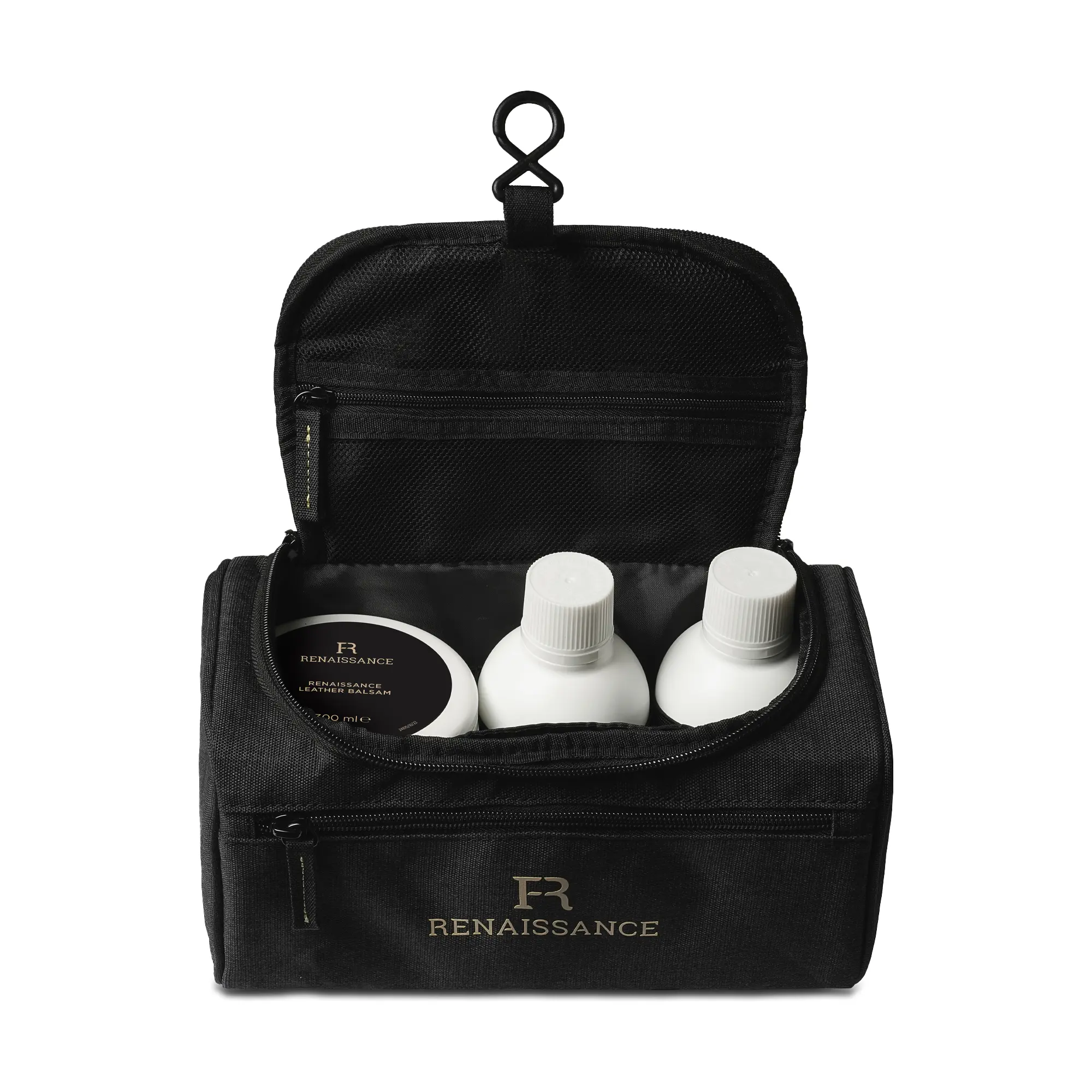 Kit d’entretien cuir Renaissance – Leather Care Kit Le Kit d’entretien cuir Renaissance contient tout le nécessaire pour nettoyer, nourrir et protéger vos selles et équipements en cuir haut de gamme. Il comprend un détergent, une huile, un baume spécifique et trois éponges adaptées. Présenté dans une élégante trousse écologique R-PET, ce kit est l’allié idéal pour préserver la beauté et la longévité de votre selle Renaissance. 👉 Voir tous les soins pour le cuir