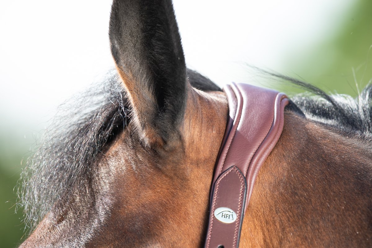 - Têtière anatomique: La forme anatomique de la têtière s’adapte parfaitement à la morphologie de la tête du cheval, assurant une répartition uniforme de la pression et évitant les points de frottement.