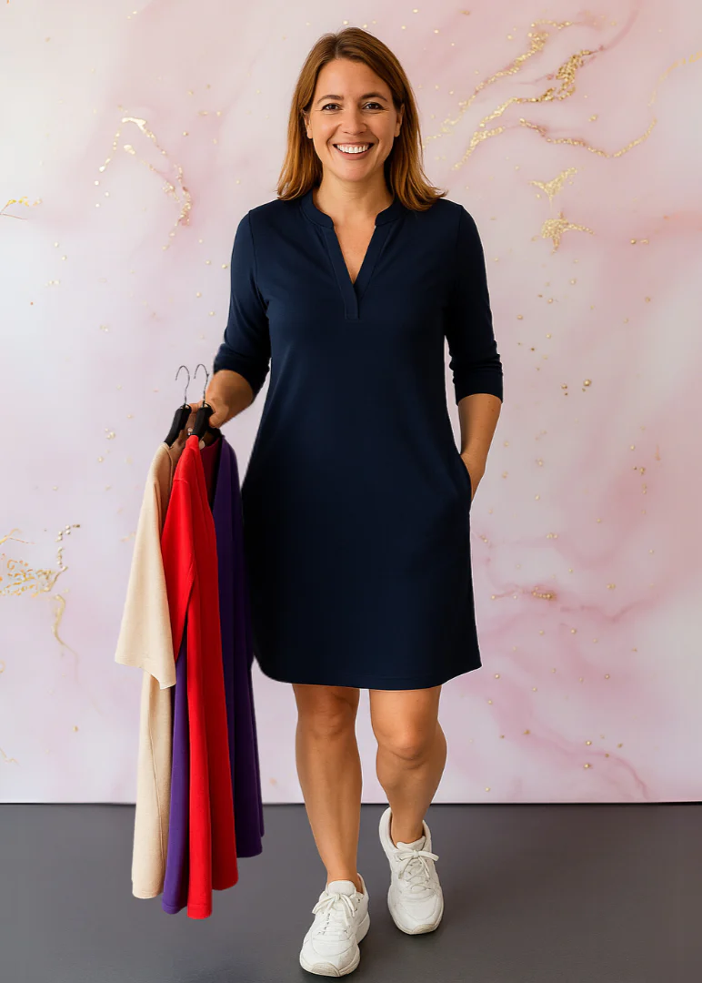 L’élégante robe Marie offre un équilibre parfait entre simplicité et raffinement, conçue pour les femmes qui apprécient à la fois le style et le confort. Que vous ayez une journée de travail chargée, que vous prévoyiez un déjeuner entre amis ou une soirée, cette robe s’adapte aisément à votre journée.