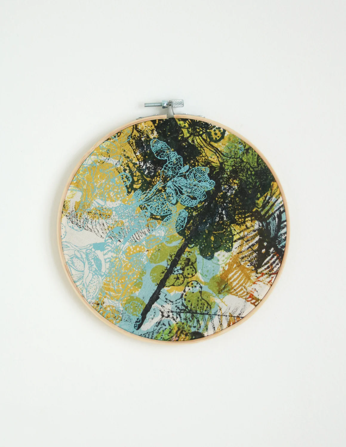 Œuvre murale, composition libre Chaque composition est sélectionnée soigneusement parmi des tissus utilisés à travers le processus d’impression. Un heureux mélange de multiples illustrations résultant de plusieurs heures de travail à imprimer tous nos produits. Chaque œuvre est unique. Pour l’accrocher au mur, une simple punaise pour tableau fera très bien le travail. diamètre de […]