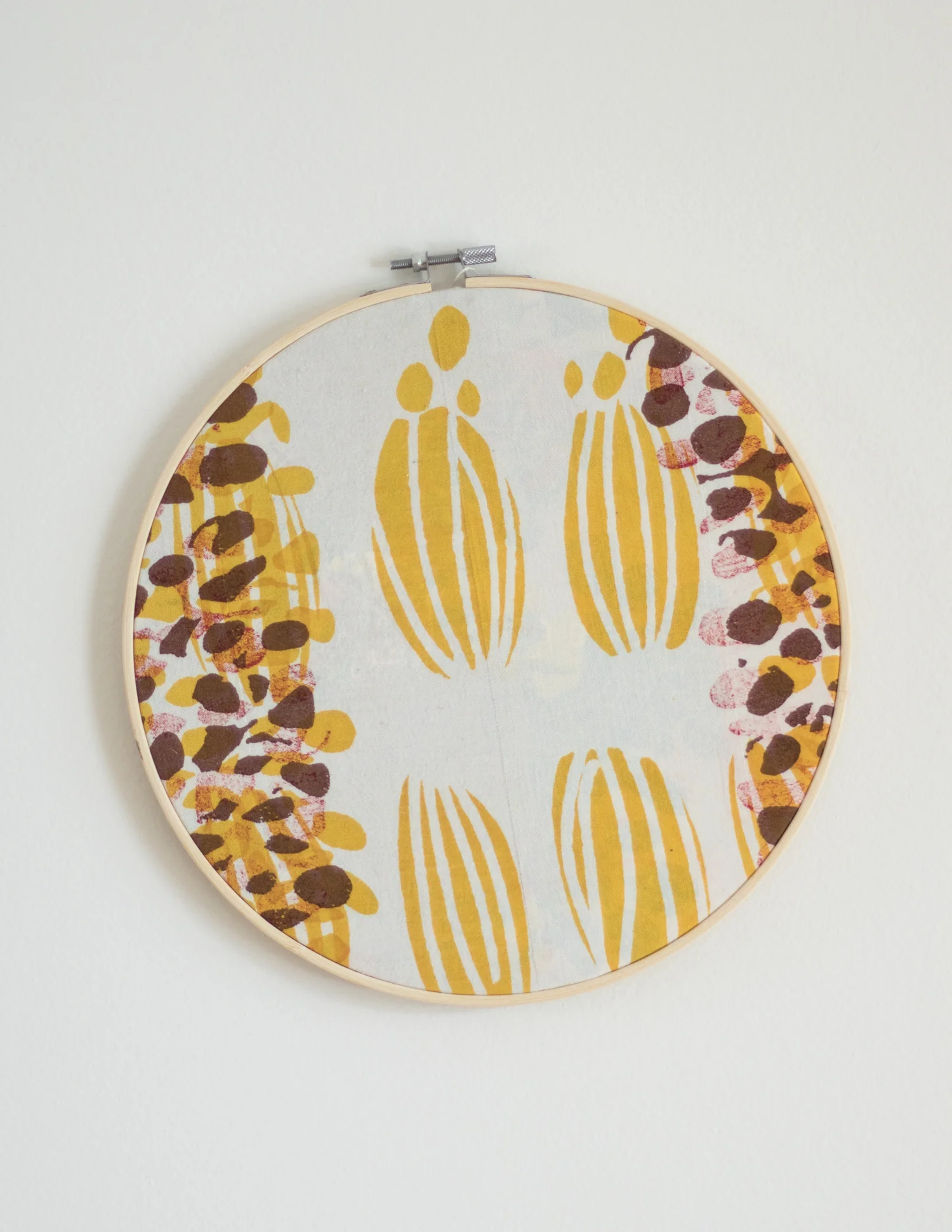 Œuvre murale, composition libre Chaque composition est sélectionnée soigneusement parmi des tissus utilisés à travers le processus d’impression. Un heureux mélange de multiples illustrations résultant de plusieurs heures de travail à imprimer tous nos produits. Chaque œuvre est unique. Pour l’accrocher au mur, une simple punaise pour tableau fera très bien le travail. Diamètre de […]