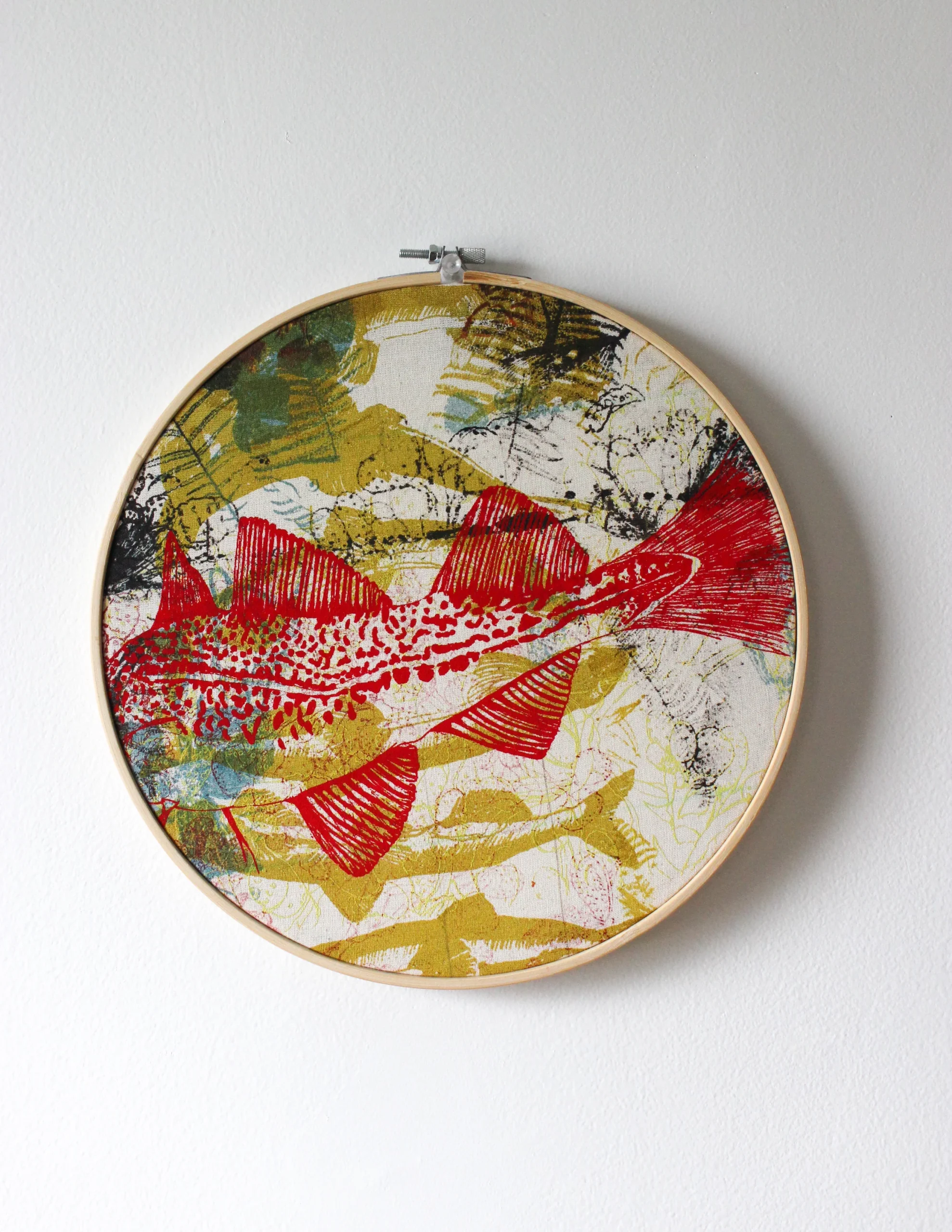 Œuvre murale, composition libre avec morue Chaque composition est sélectionnée soigneusement parmi des tissus utilisés à travers le processus d’impression. Un heureux mélange de multiples illustrations résultant de plusieurs heures de travail à imprimer tous nos produits. Chaque œuvre est unique. Pour l’accrocher au mur, une simple punaise pour tableau fera très bien le travail. […]