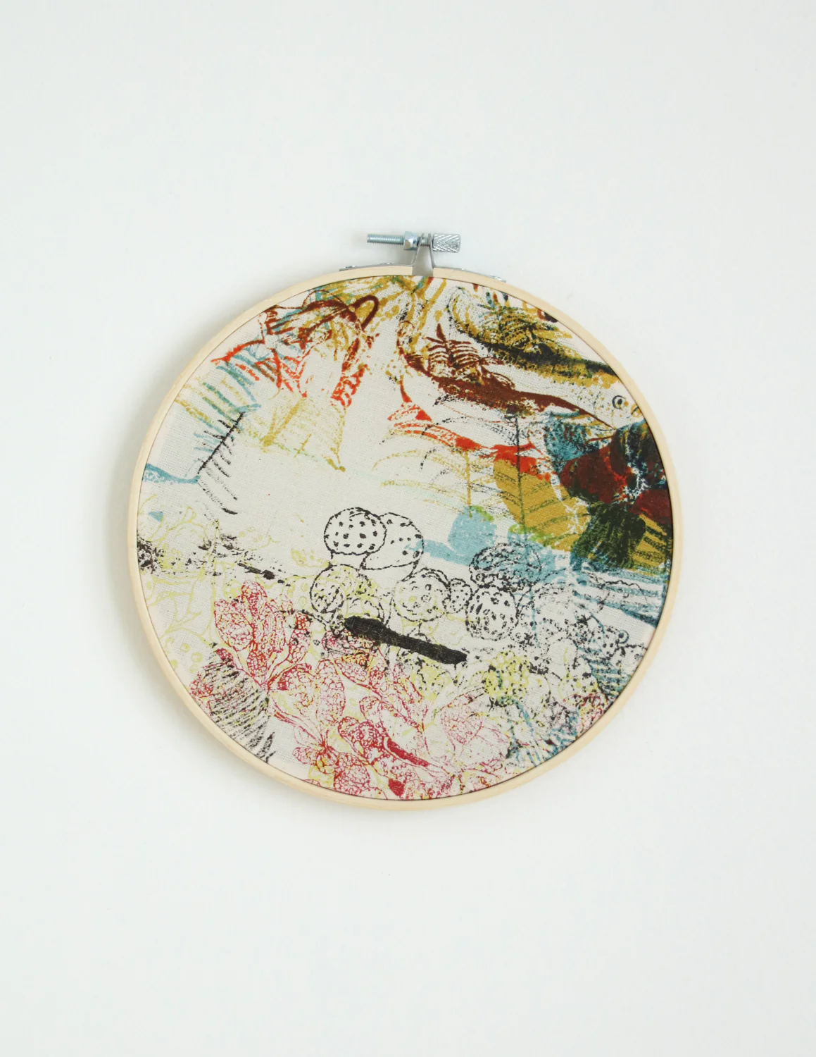 Œuvre murale, composition libre Chaque composition est sélectionnée soigneusement parmi des tissus utilisés à travers le processus d’impression. Un heureux mélange de multiples illustrations résultant de plusieurs heures de travail à imprimer tous nos produits. Chaque œuvre est unique. Pour l’accrocher au mur, une simple punaise pour tableau fera très bien le travail. diamètre de […]
