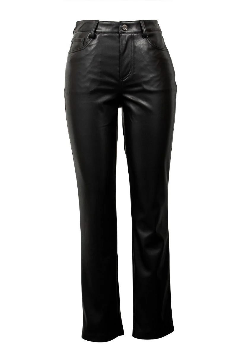Beau pantalon classique, coupe ajustée,modèle 5 poches. Effet cuir.