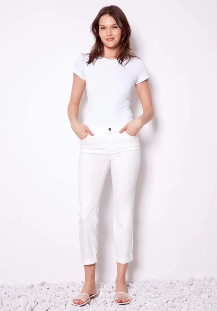 – Fausse braguette surpiquée avec fermeture à bouton sur le dessus