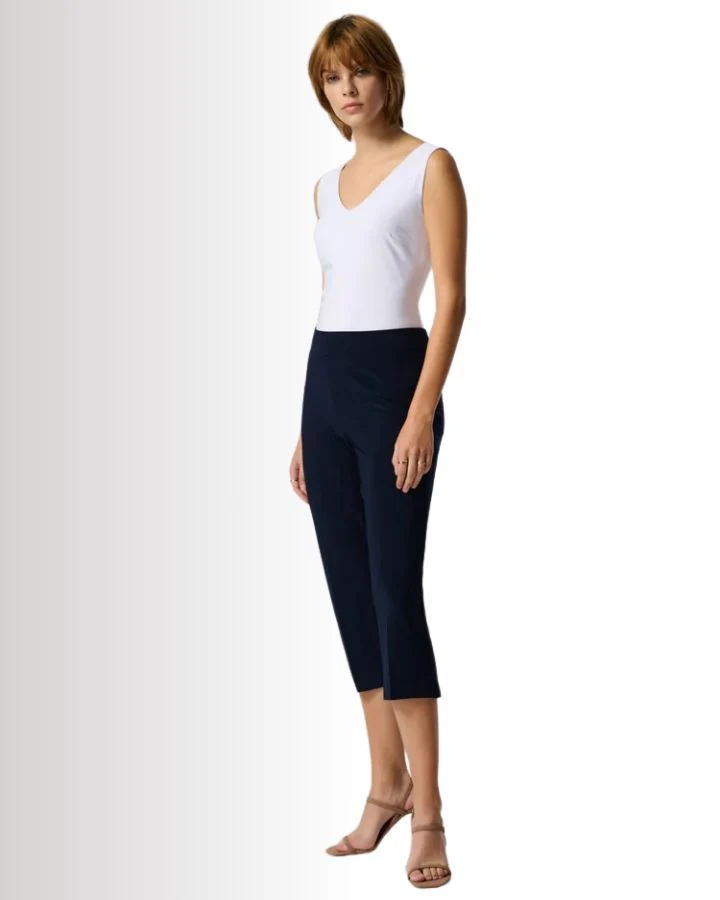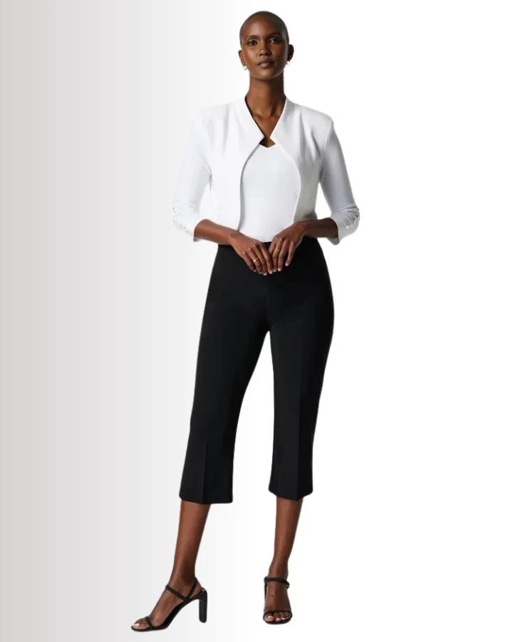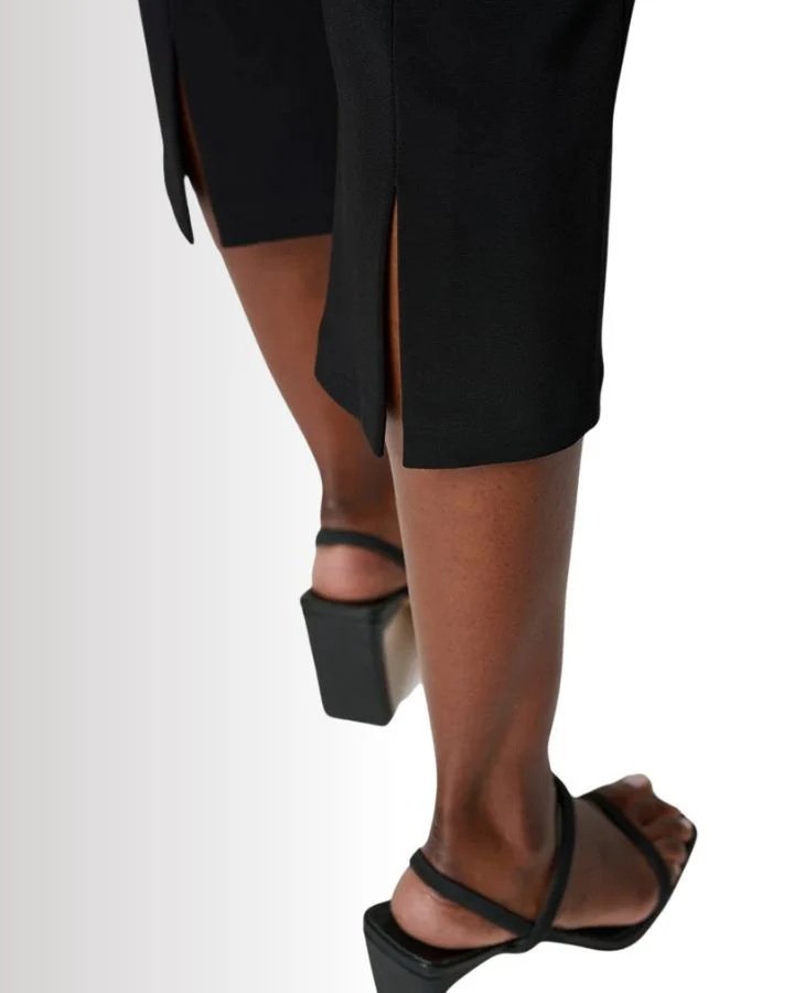 Ce pantalon chic est un essentiel pour toute garde-robe moderne. Conçu en longueur trois-quarts, il épouse la silhouette avec élégance grâce à son tissu extensible et ajusté. Sa coupe épurée, sans poches visibles ni distractions, met l’accent sur la simplicité et le raffinement. Idéal pour toutes les occasions, il se combine parfaitement avec un haut chic et des talons pour une tenue sophistiquée.