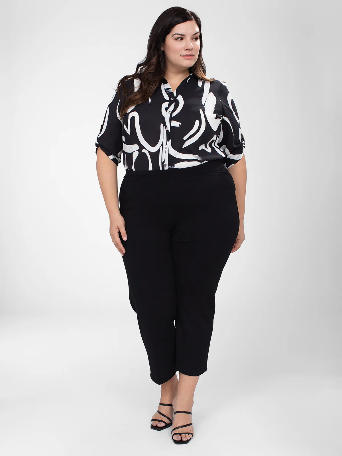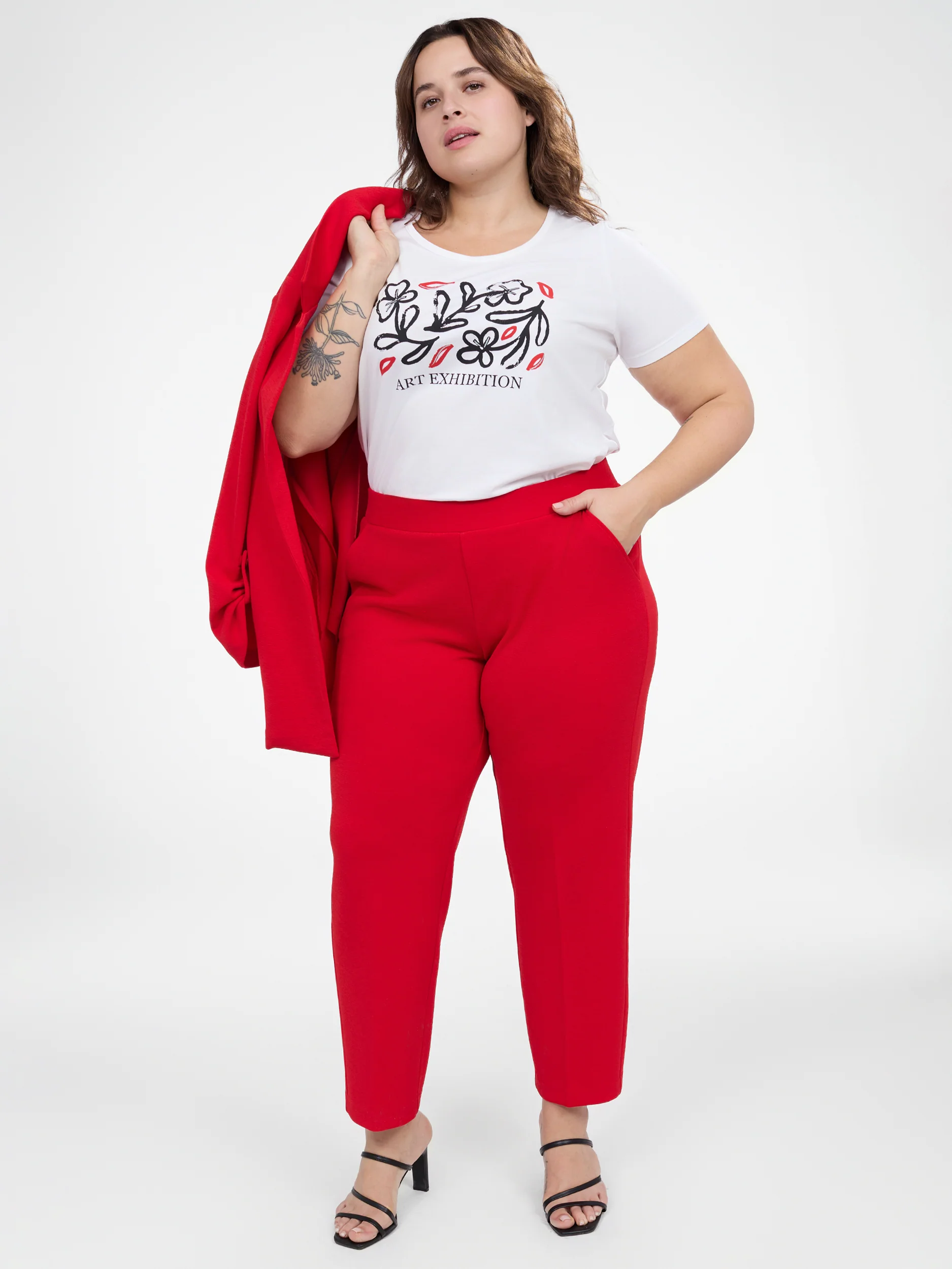 Ce pantalon taille plus est un essentiel polyvalent, parfait pour un look habillé ou plus décontracté. Sa coupe flatteuse et son tissu souple épousent vos formes tout en offrant une liberté de mouvement appréciable.
