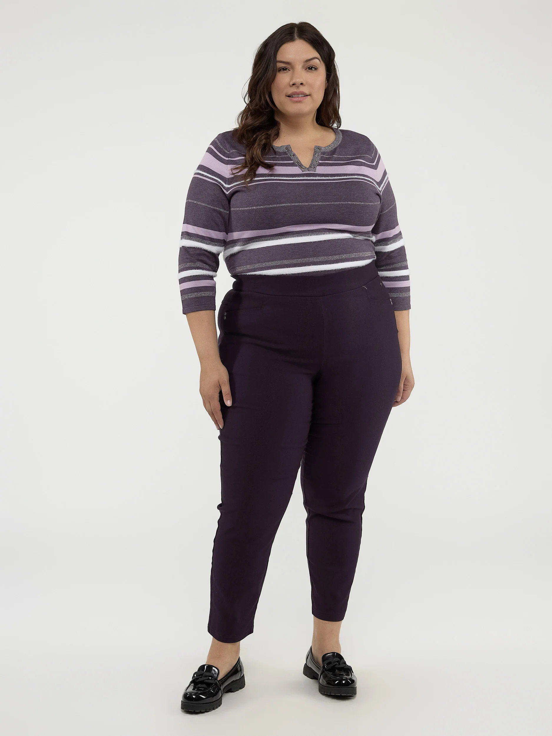 Ce pantalon slim à enfiler est un incontournable de votre garde-robe. Son tissu élastique épouse vos courbes aux bons endroits pour une silhouette à la fois chic et confortable.