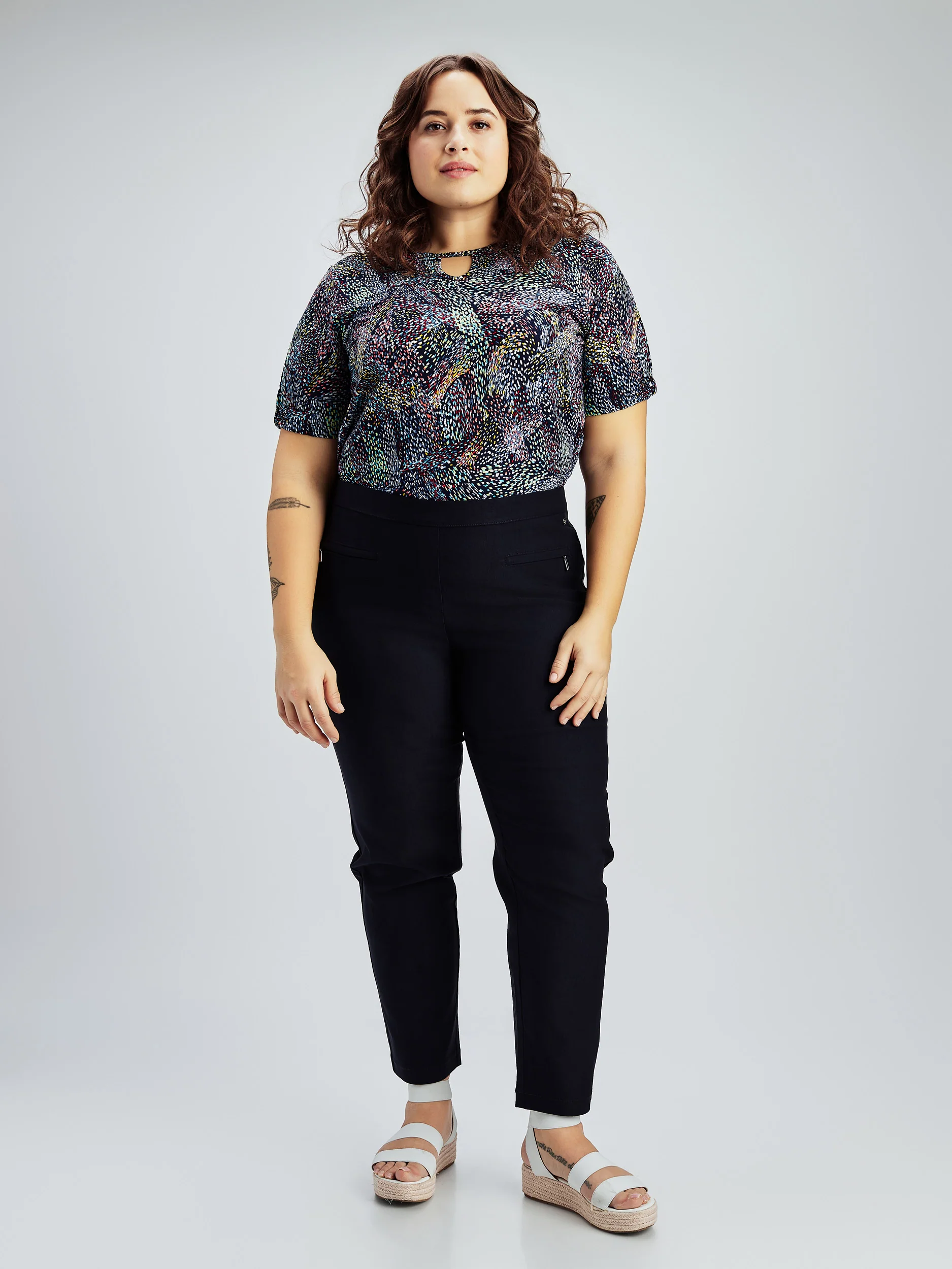Pantalon ajusté, doté deux poches zippées à l’avant et de deux poches plaquées à l’arrière.