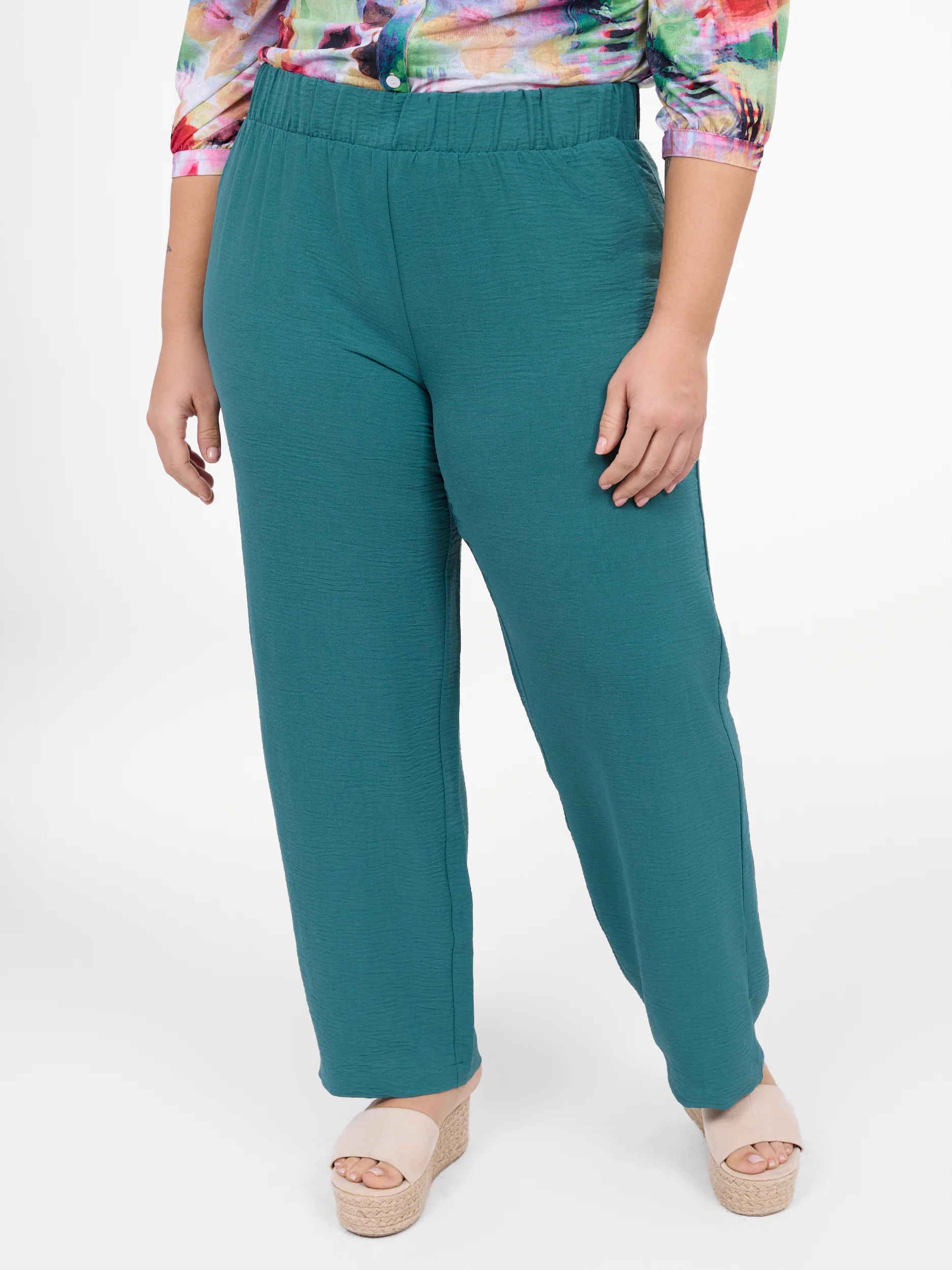 Ce pantalon fluide en tissu texturé combine une taille élastique confortable et une coupe droite qui allonge la silhouette. Sa teinte vibrante apporte une touche de fraîcheur à vos looks.