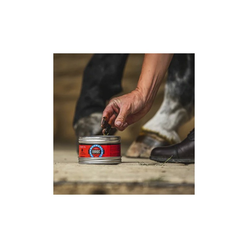 - Appliquer la pommade sur les sabots propres et secs à l’aide de la main ou d’une petite brosse.