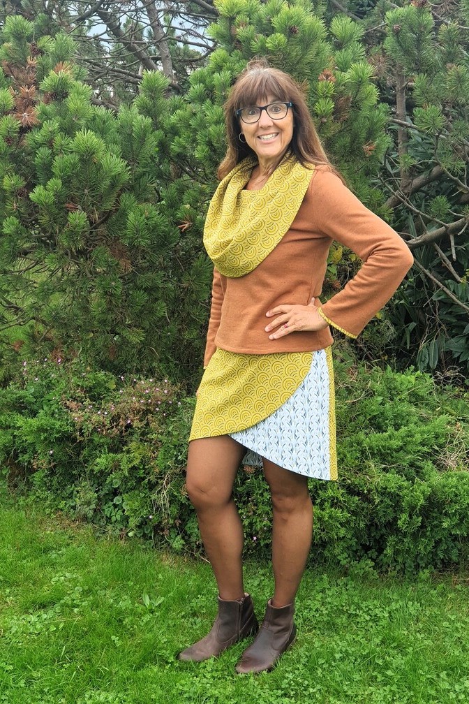 Il fait froid dehors, on est bien qu’à la maison. Avec ce pull, douceur et chaleur vous envelopperont tel un plaid douillet grâce à son jersey moelleux, épais et agréable et son large col à l’imprimé élégant avec des paons stylisés ou des cercles en écailles. Ce modèle fait partie de la collection capsule Paon, et a pour but que chaque jour soit chaud, douillet et plaisant. Son col, contrastant avec l’uni du jersey, s’ajuste sur les épaules ou “tombe” sur la poitrine selon votre préférence.