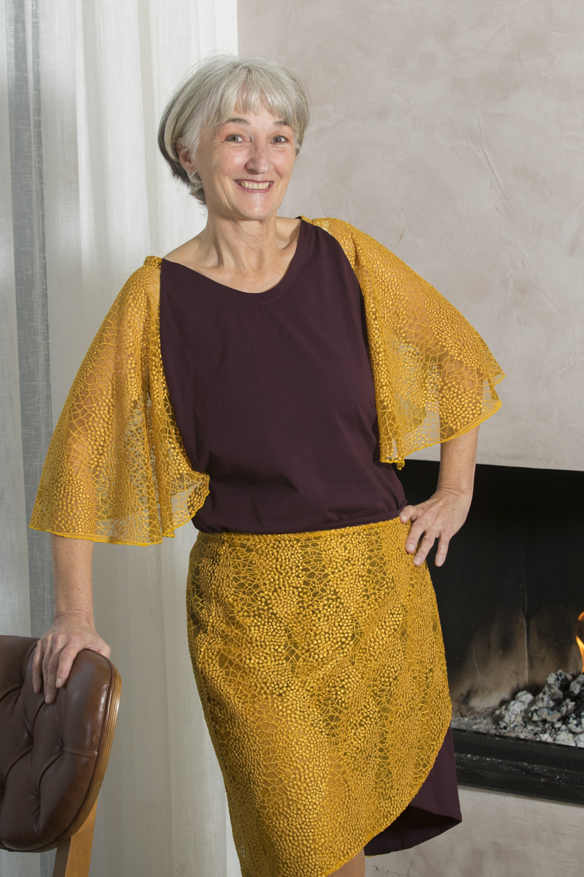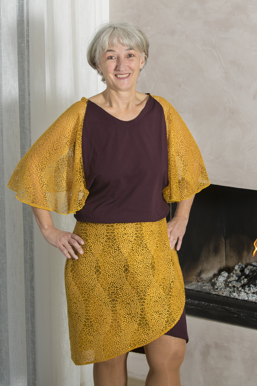 - sa jupe assortie – à commander séparément – jupe tulipe réversible ou jupe double
