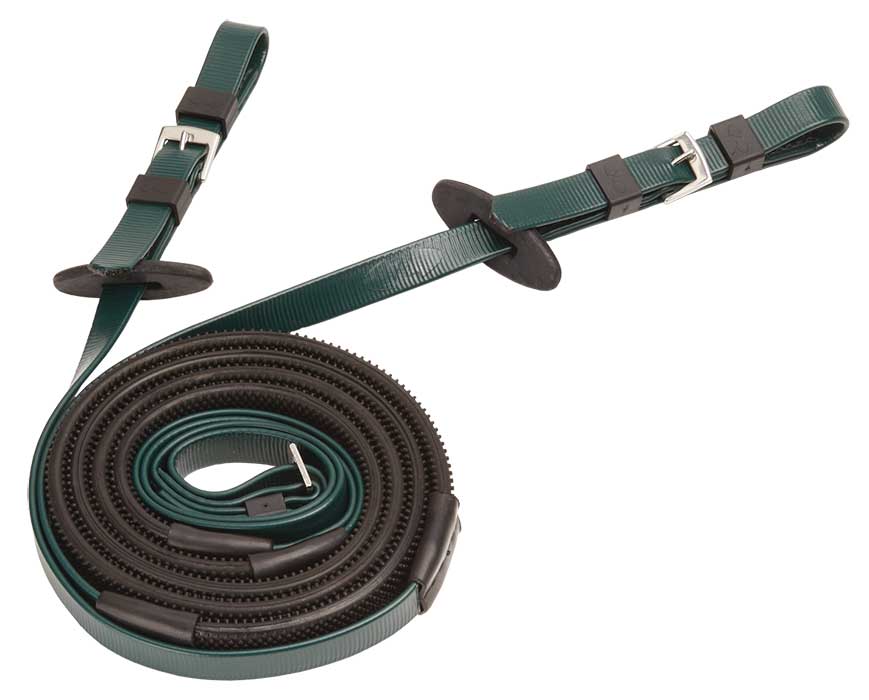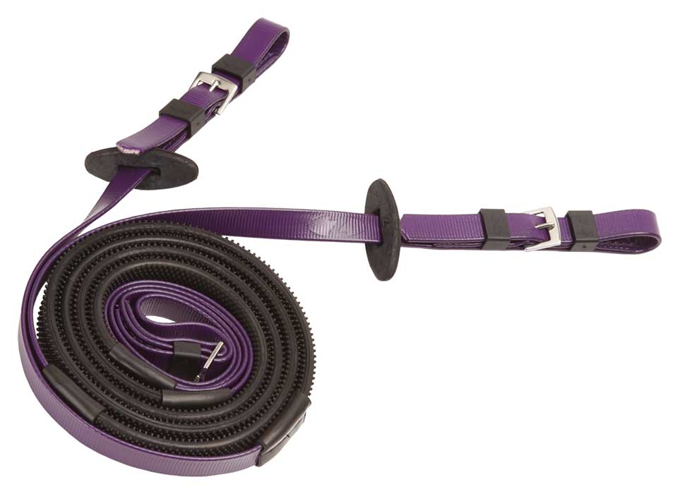 Rênes de course 16mm Zilco (Inox) : Rêne à boucles, tissée recouverte d’un copolymère et grip à larges picots en caoutchouc pour une meilleure adhérence. Matière : Copolymère et caoutchouc pour améliorer le grip. Couleurs disponibles (Grip Noir) : Violet, Jaune, Vert foncé, Rouge, Blanc, Noir, Bleu marine, Marron, Bleu royal. Taille Unique : 145cm