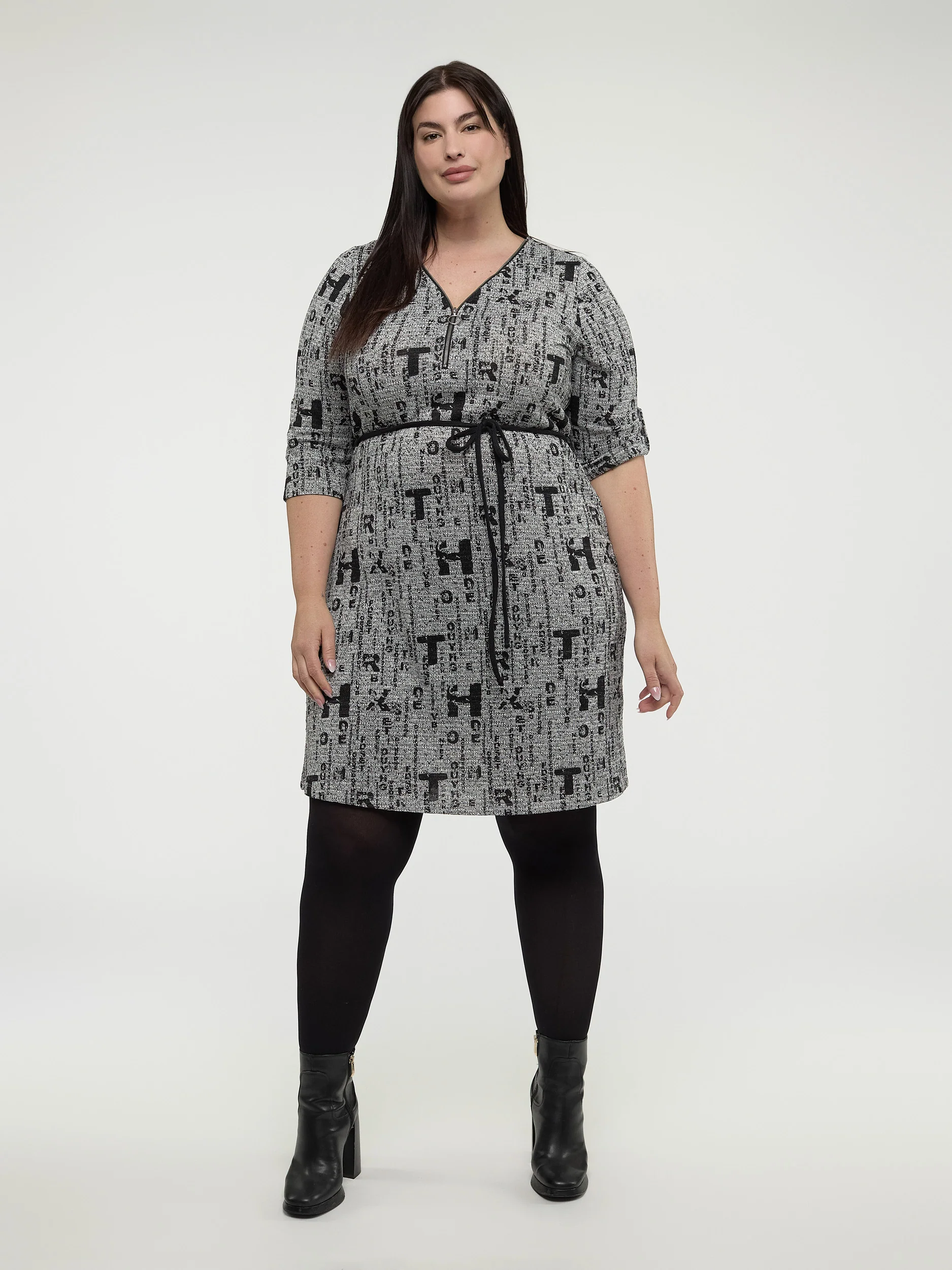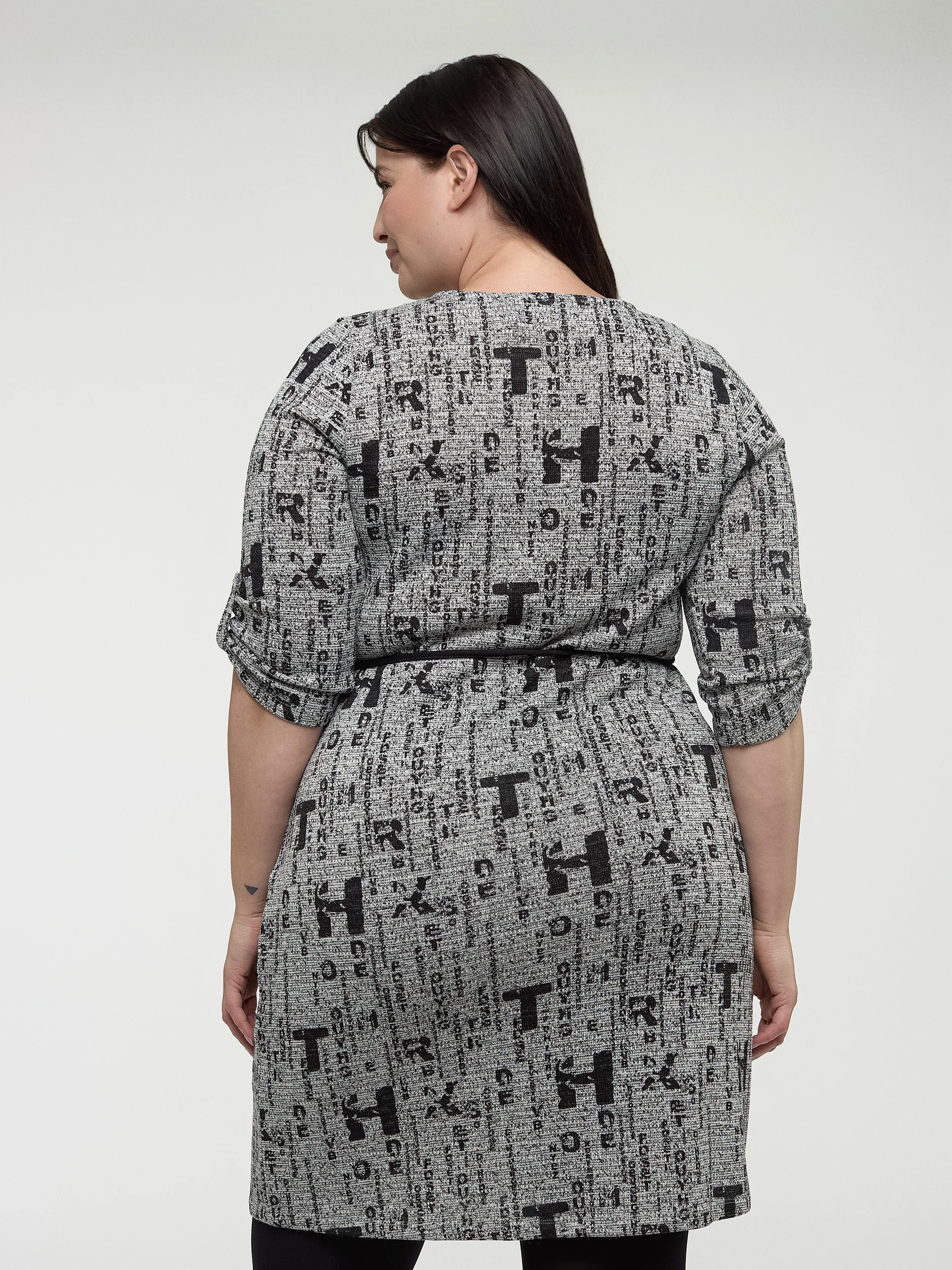 Avec son motif typographique unique, cette robe taille plus offre une allure originale et élégante. Ses manches 3/4 et sa coupe flatteuse garantissent un port agréable toute la journée.