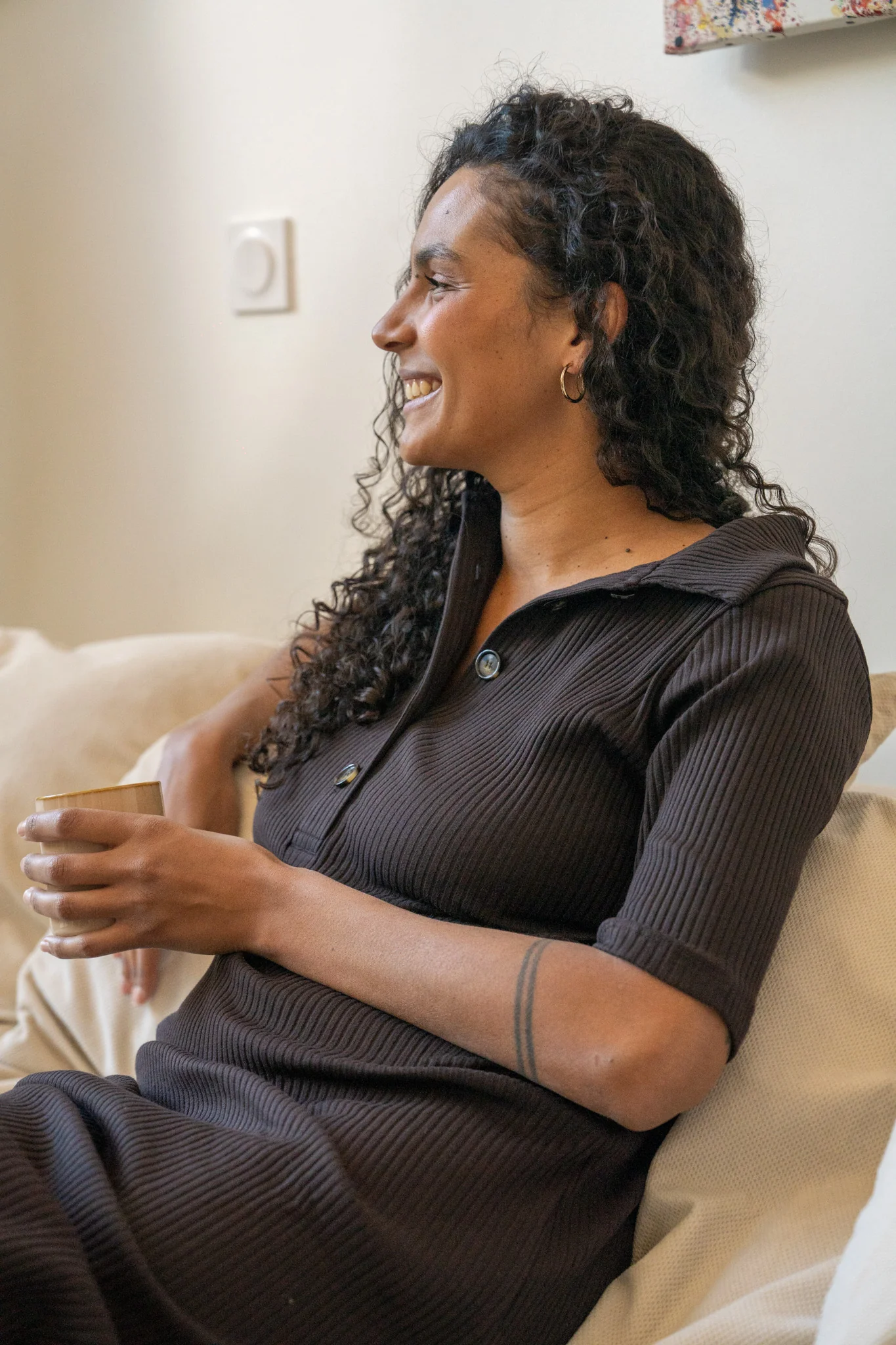 Alice ~ Robe unie avec fermeture boutonnée confort