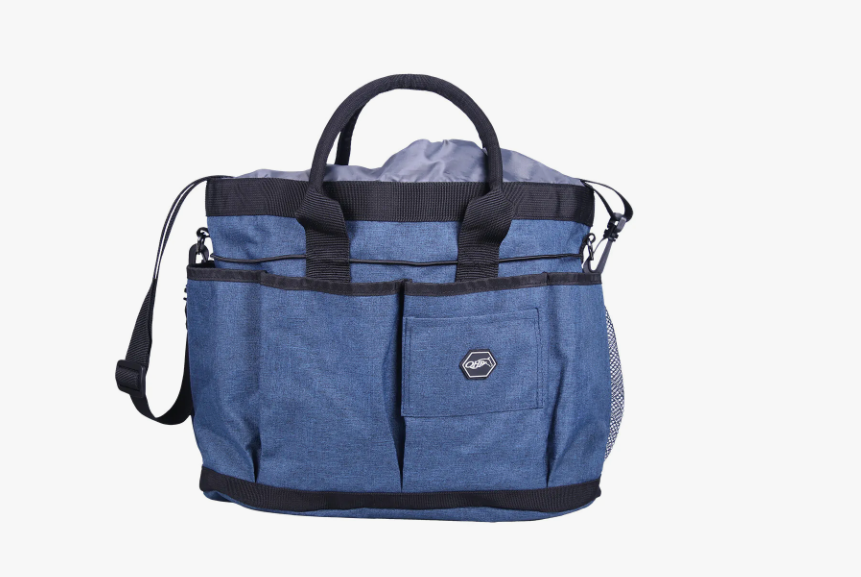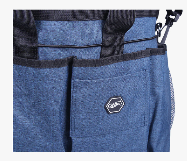 🧼 Sac de pansage QHP – Pratique, robuste et élégant Organisez facilement vos brosses et produits avec ce sac de pansage QHP hydrofuge et ultra pratique. → Retrouvez aussi nos brosses de pansage en fibres naturelles.