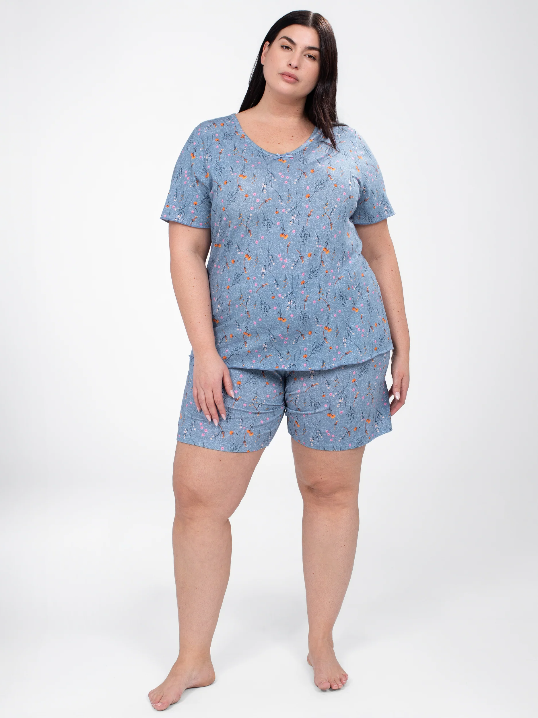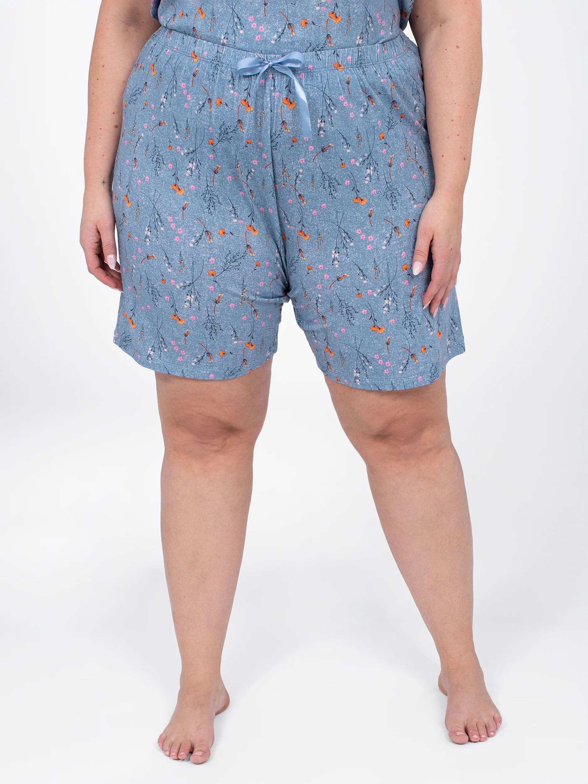 Ce short de pyjama taille plus, léger et doux, est orné d’un imprimé fleuri délicat qui invite à la détente. La ceinture élastiquée avec un joli ruban apporte une touche de charme tout en s’adaptant parfaitement à vos formes.