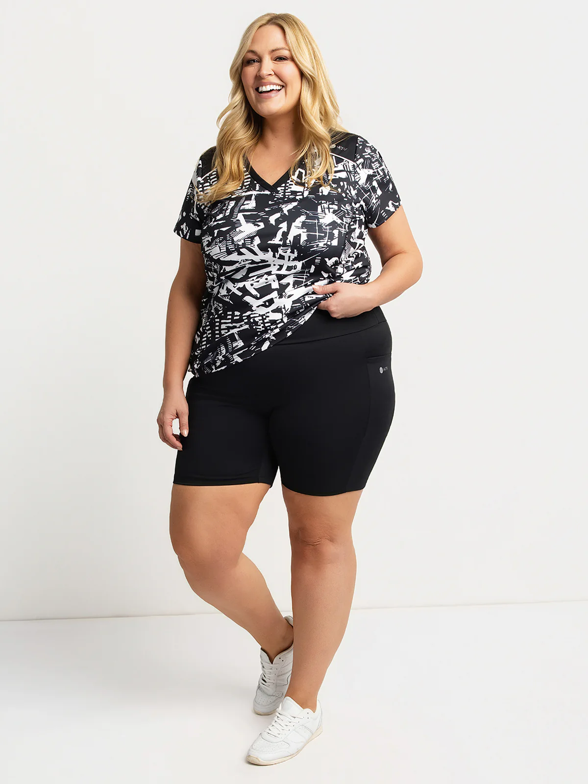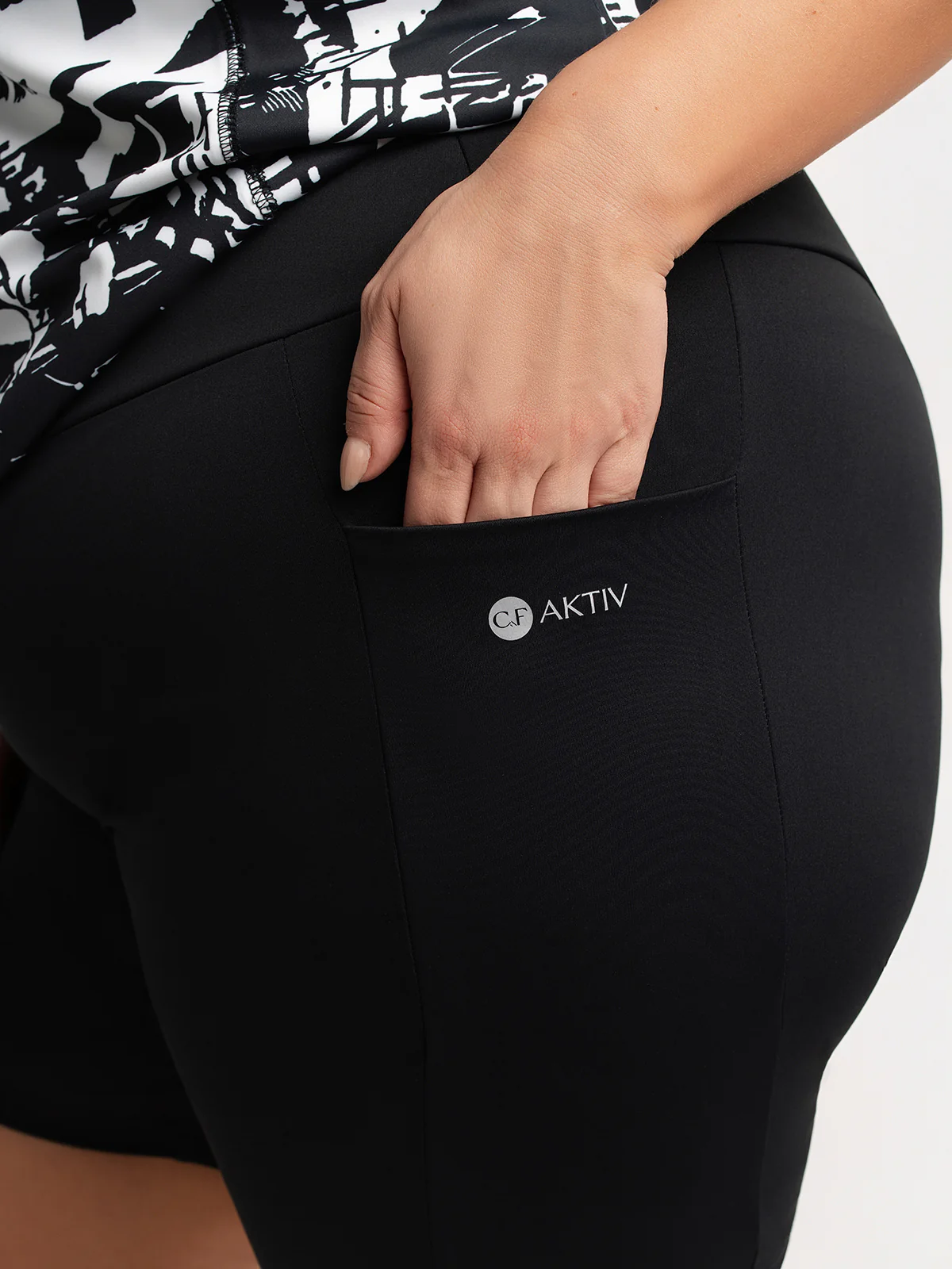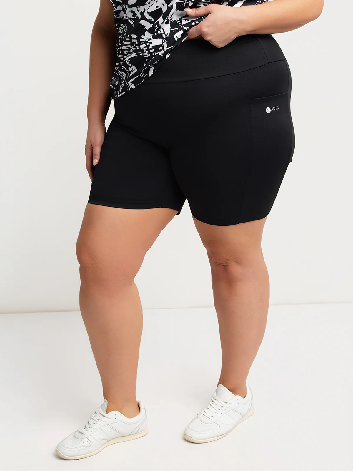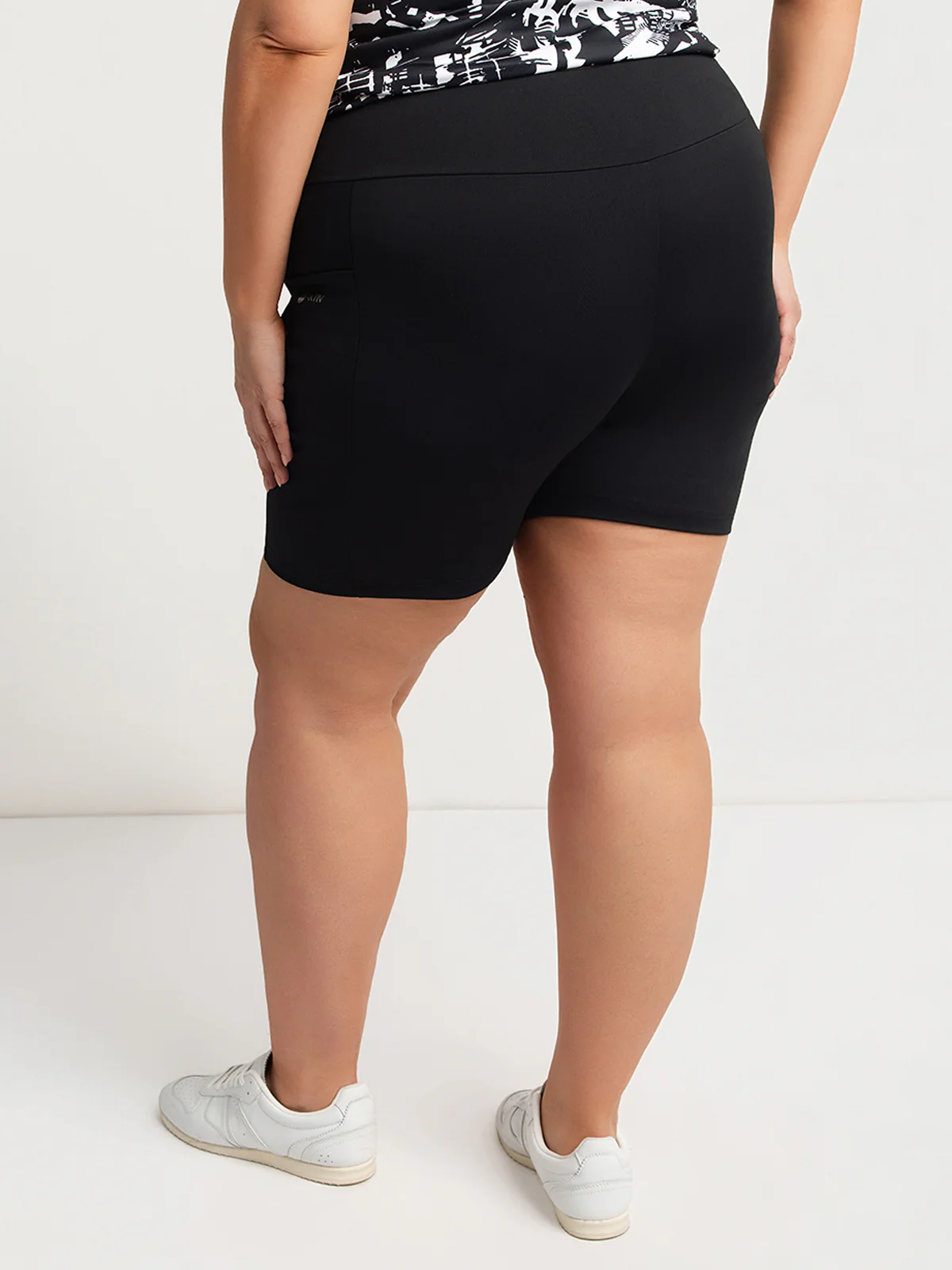 Short de yoga en textile extensible uni avec taille haute et ceinture large. Il présente une longueur mi-cuisse et une poche latérale plaquée.