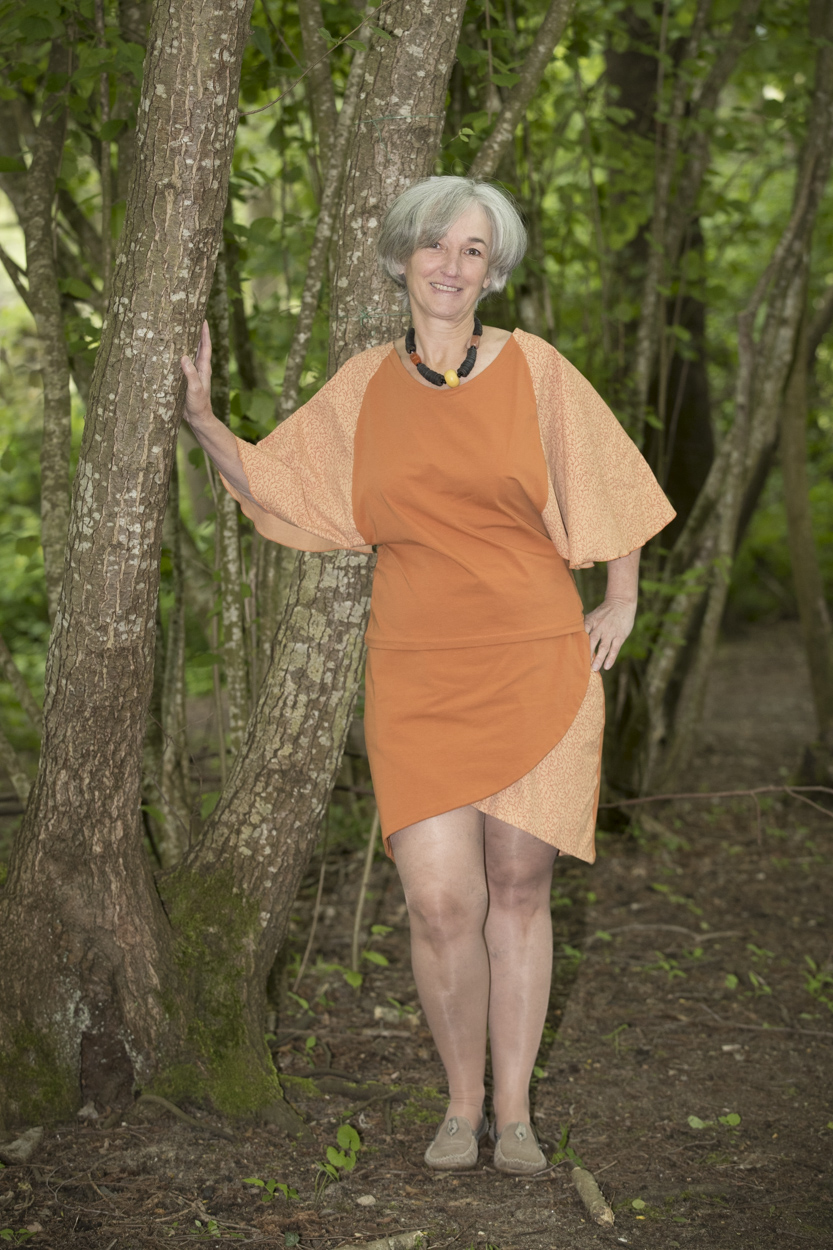 Ce t-shirt pourra vous accompagner au quotidien par sa coupe confortable et sa douceur, agrémenter votre tenue pour une soirée décontractée tout en apportant une originalité par ses manches papillon (ou chauve-souris selon comme on les appelle), à compléter par une jolie jupe de la collection ou de votre penderie, ou par un pantalon assorti.