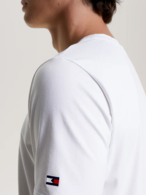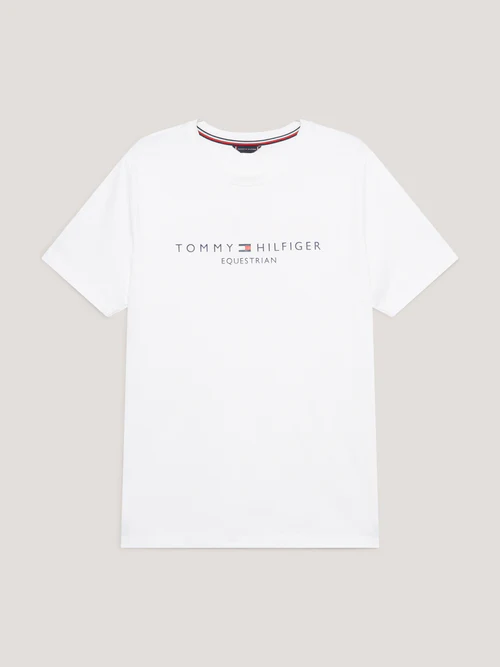 Ce modèle à manches courtes et col rond affiche fièrement le logo emblématique Tommy Hilfiger Equestrian imprimé sur la poitrine, apportant une identité sportive et raffinée. À l’arrière, un petit drapeau iconique complète le design pour une finition soignée.