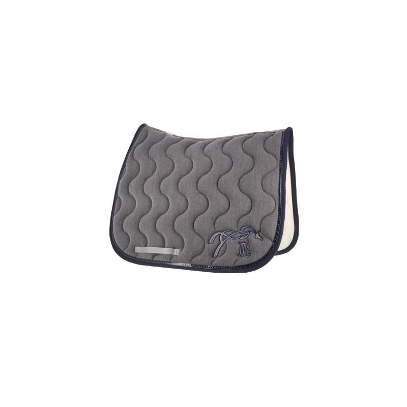 Tapis de selle Point Sellier Classique – Gris Chiné & Marine Pénélope Collections Ce joli tapis de selle orné d’une galon point sellier est doté d’une épaisse matelassure qui protège le dos du cheval. Taille cheval