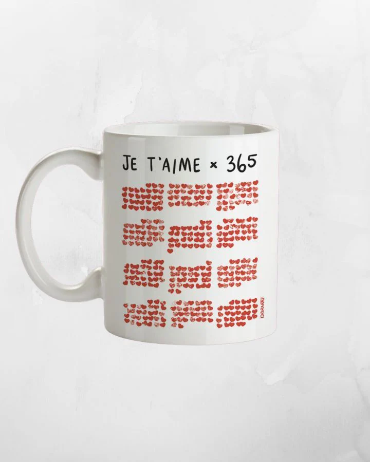 Tasse en céramique de 11oz, imprimée à Montréal. Va au lave-vaisselle et au micro-ondes. La tasse est conçue pour que le design apparaisse vers l’extérieur lorsque tenue par une personne droitière. Design d’artistes du Québec. Fière idée de Darvee!