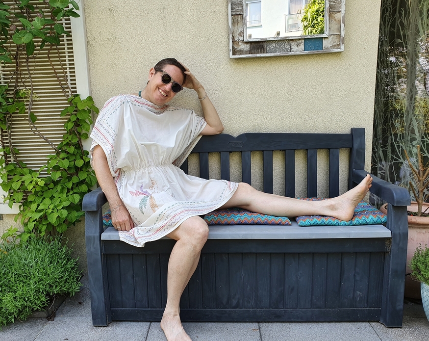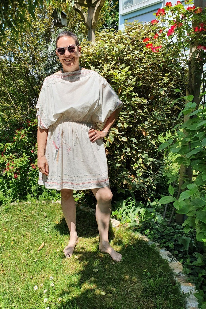 Avec cette tunique, réalisée à partir de foulards upcyclés, soyez habillée en toute simplicité de façon éco-responsable. Elastiquée à la taille, elle est d’un pratique à porter et vite mise/enlevée, très confortable et aussi légère qu’une plume.