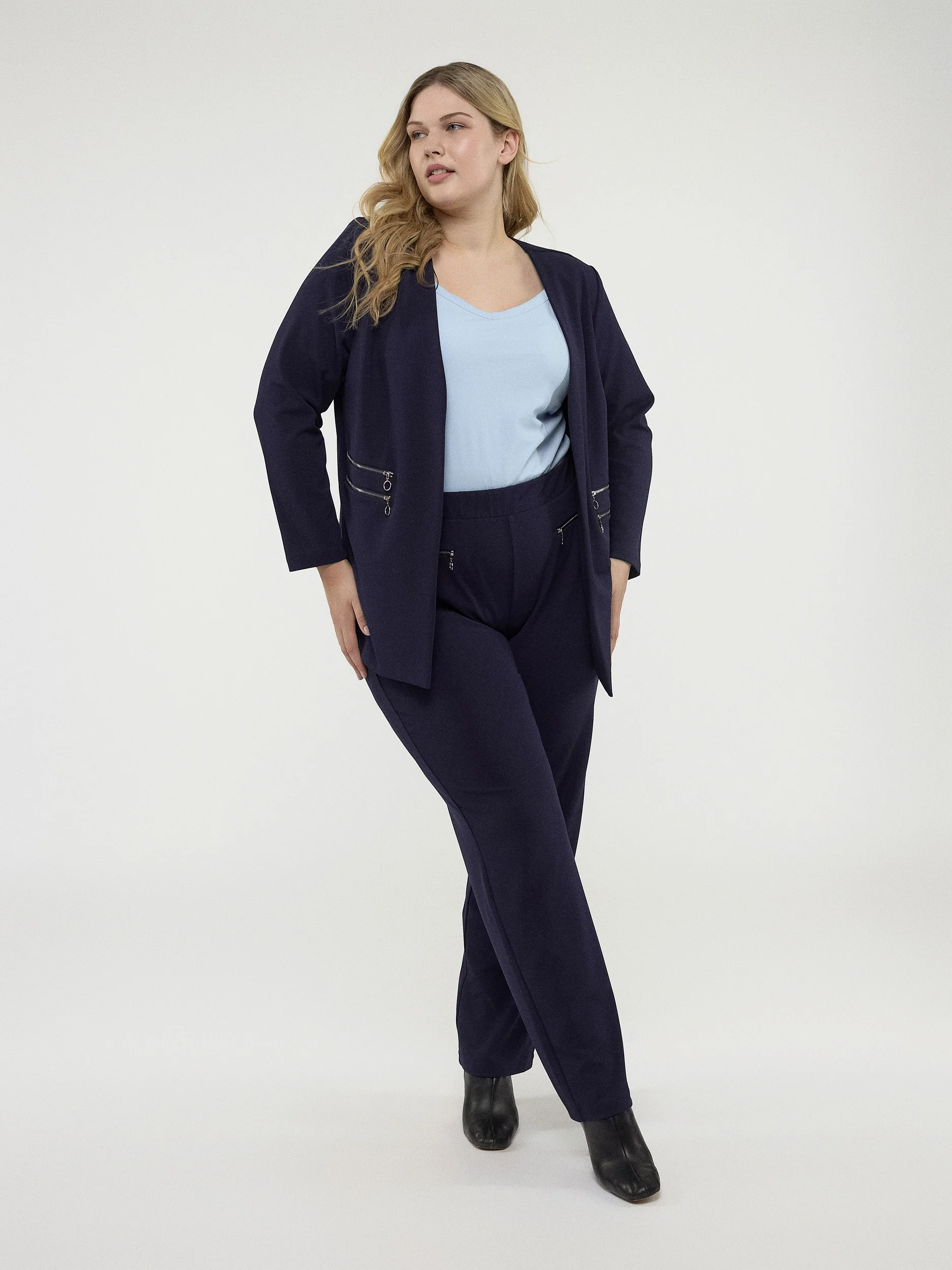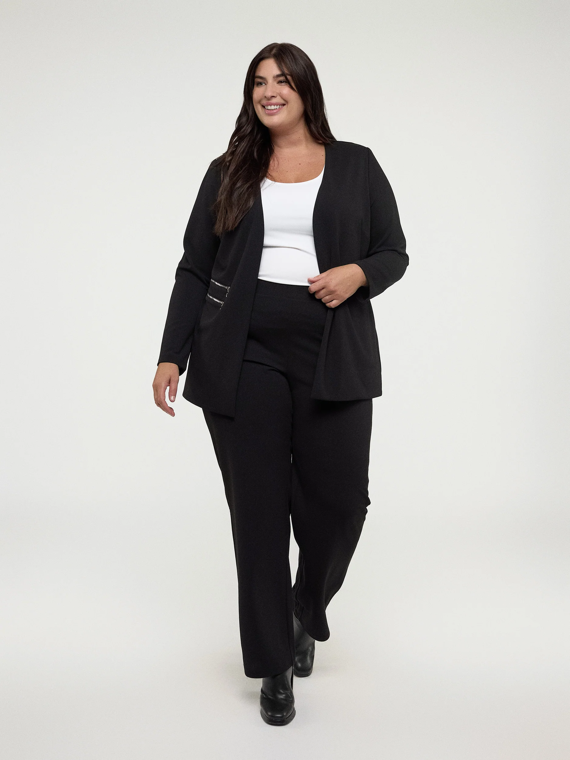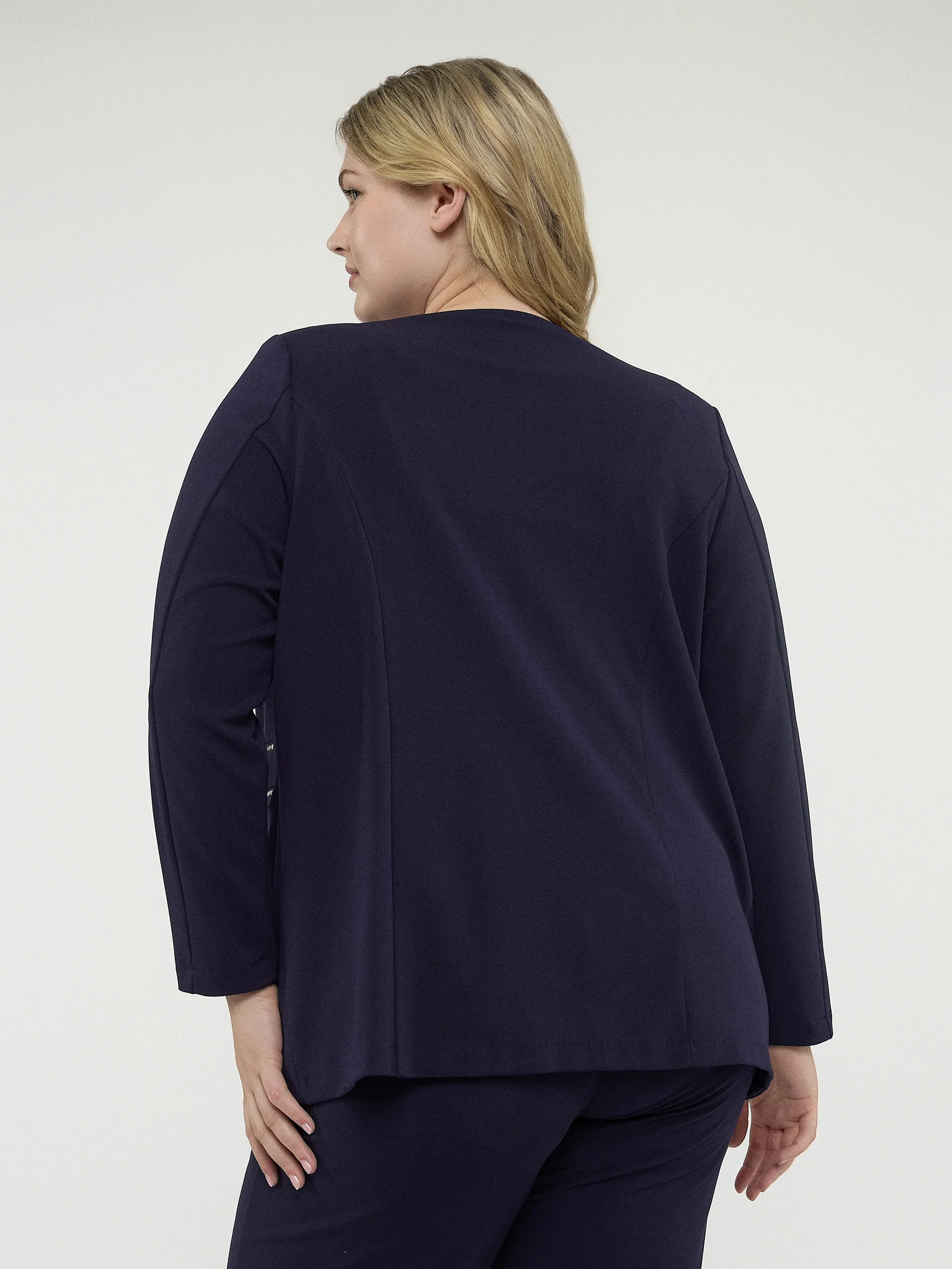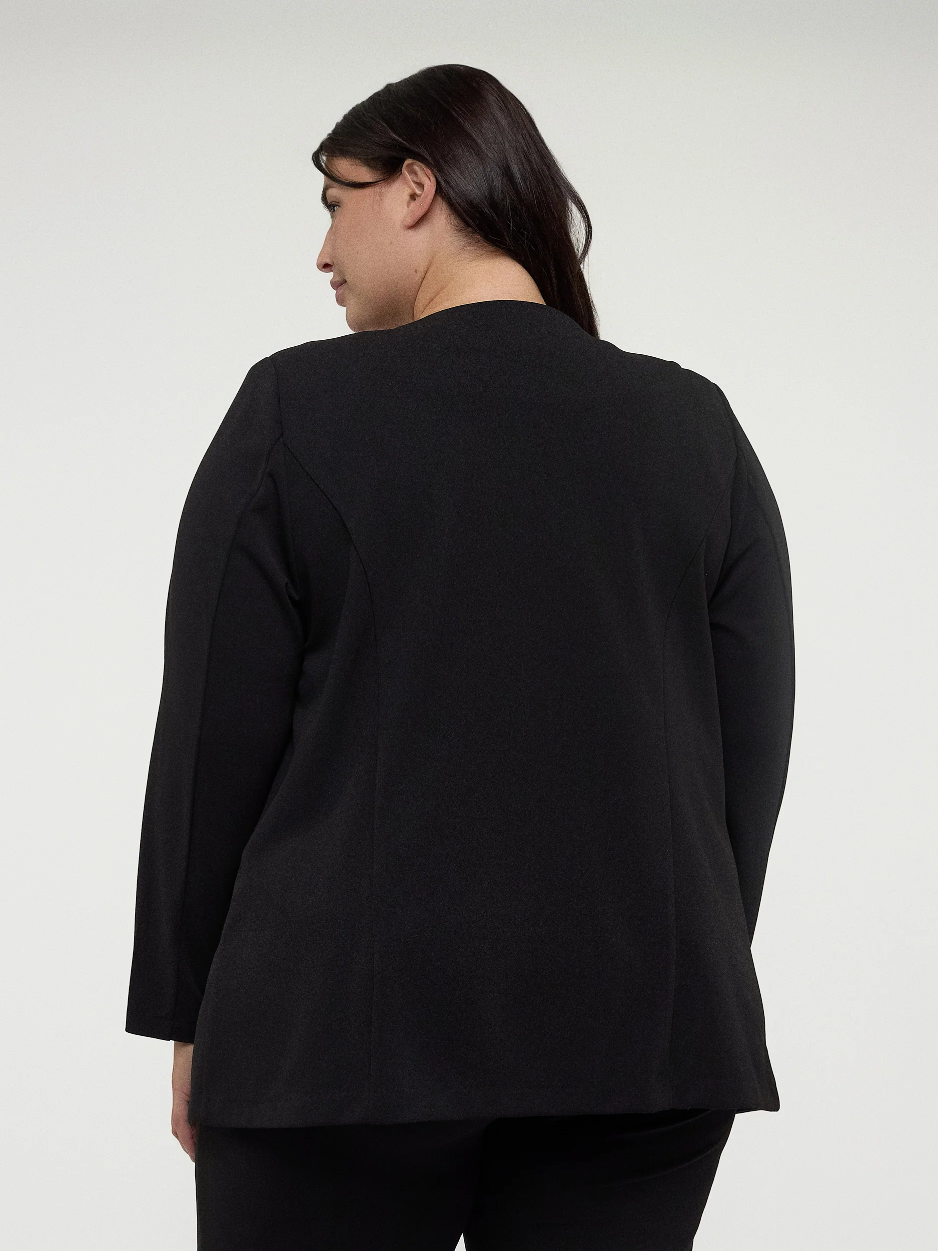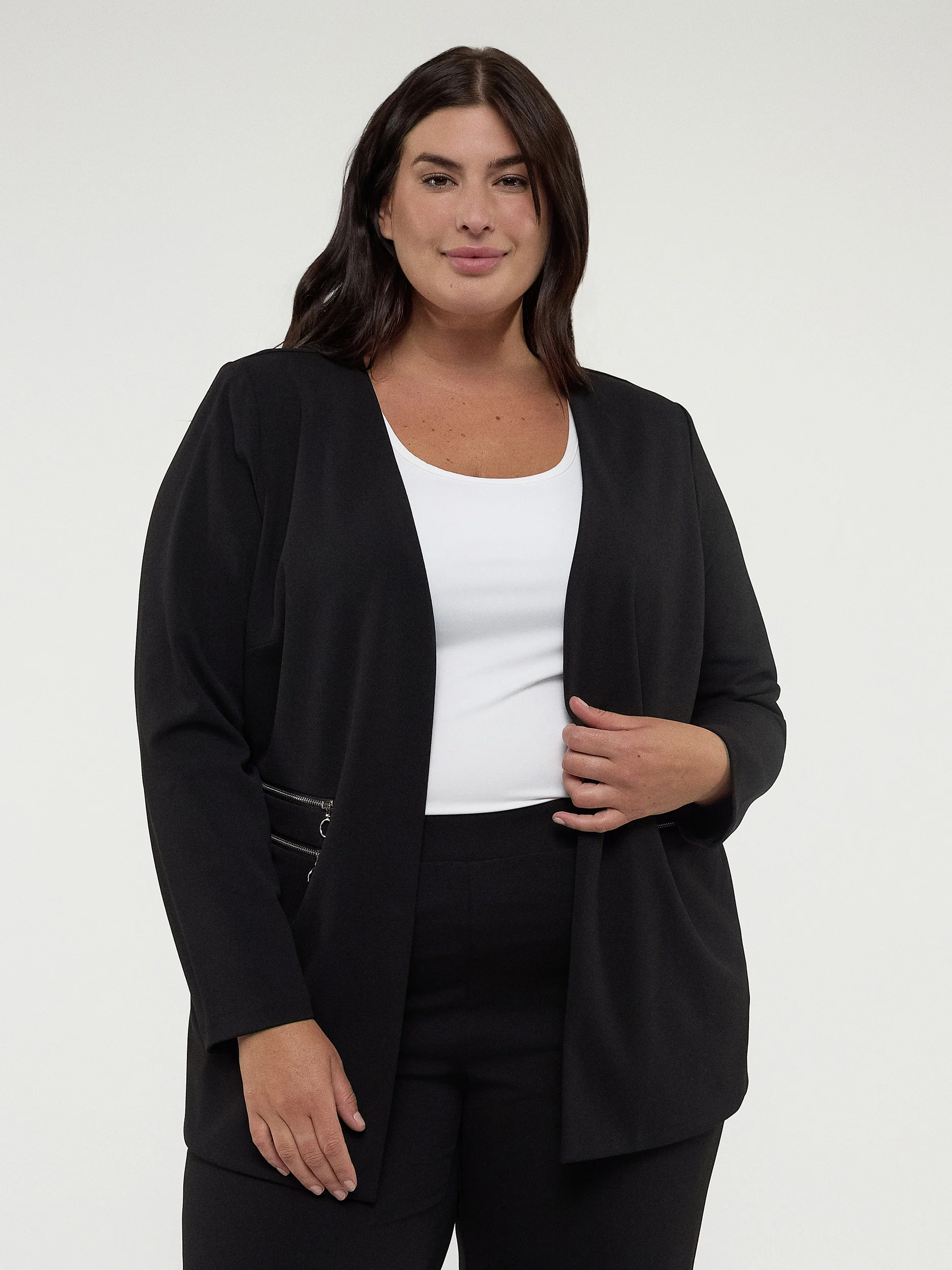 Une veste en tricot taille plus pour une superposition confortable. Classique et professionnelle, cette veste à manches longues et une coupe semi-ajustée offre le style intemporel au travail.