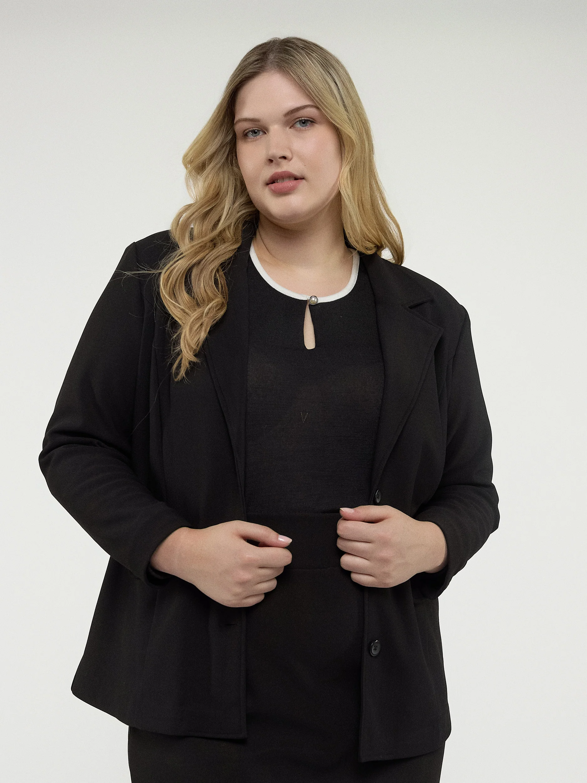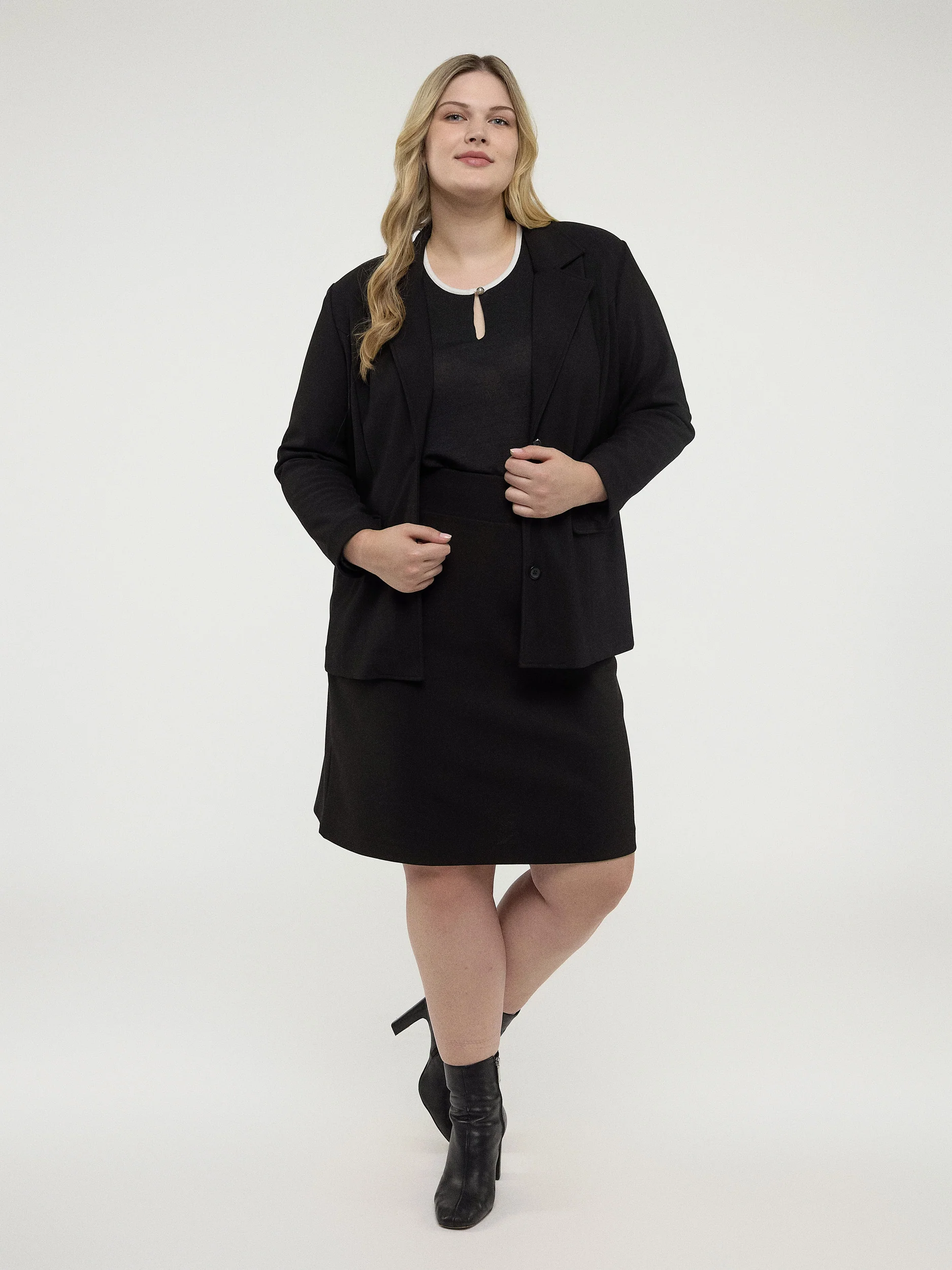 Parfaite pour les journées fraîches d’automne, cette veste basique taille plus à manches longues vous garde bien au chaud et à l’aise sans faire de compromis sur la polyvalence. La silhouette semi-ajustée en fait la touche de référence que vous utiliserez encore et encore tout au long de la saison, qu’elle soit habillée ou décontractée.