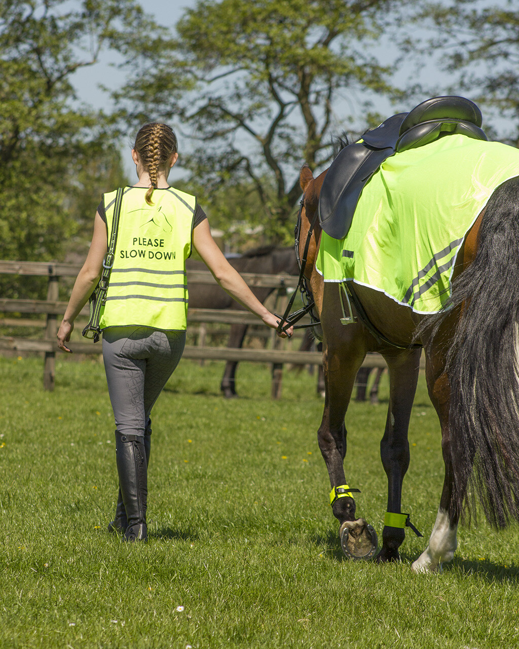 Un gilet réfléchissant pour le cavalier permet d’être vu par tout le monde pendant la journée ou dans l’obscurité à grâce aux bandes réfléchissantes. Le gilet a une fermeture éclair sur le devant.