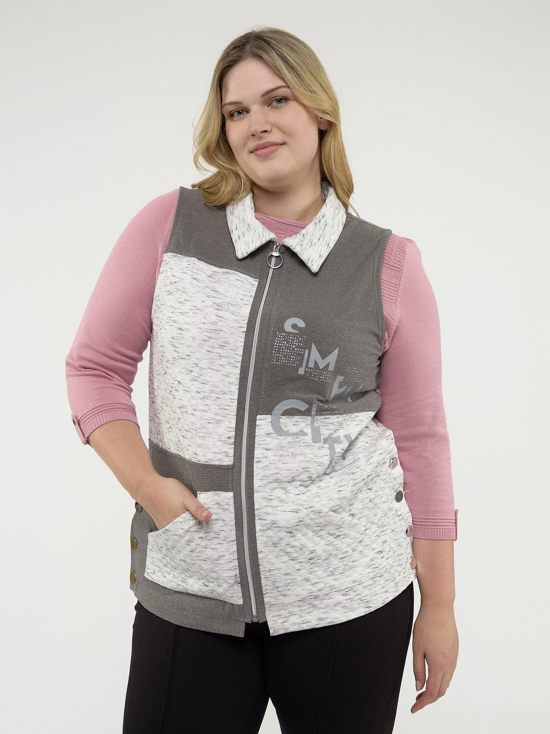 Cette veste sans manches allie confort et style grâce à sa texture et à son imprimé graphique. Associez-la à des basiques simples pour une tenue de détente sans effort, à la fois confortable et chic.