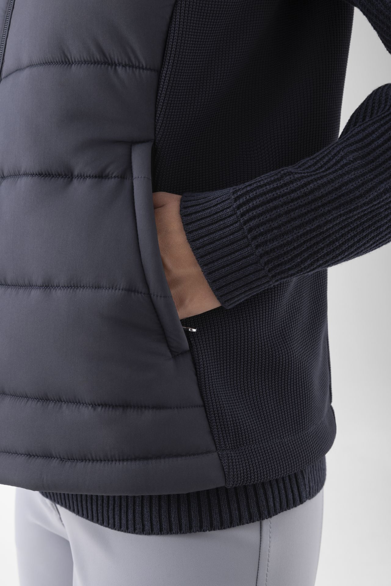Conçue pour les cavalières exigeantes, elle est équipée de deux poches zippées pour un accès pratique et rapide à vos accessoires. La fermeture éclair à double curseur garantit un ajustement optimal, tandis que le dos en micro-polaire tricoté favorise une ventilation efficace, parfaite pour éviter la surchauffe.
