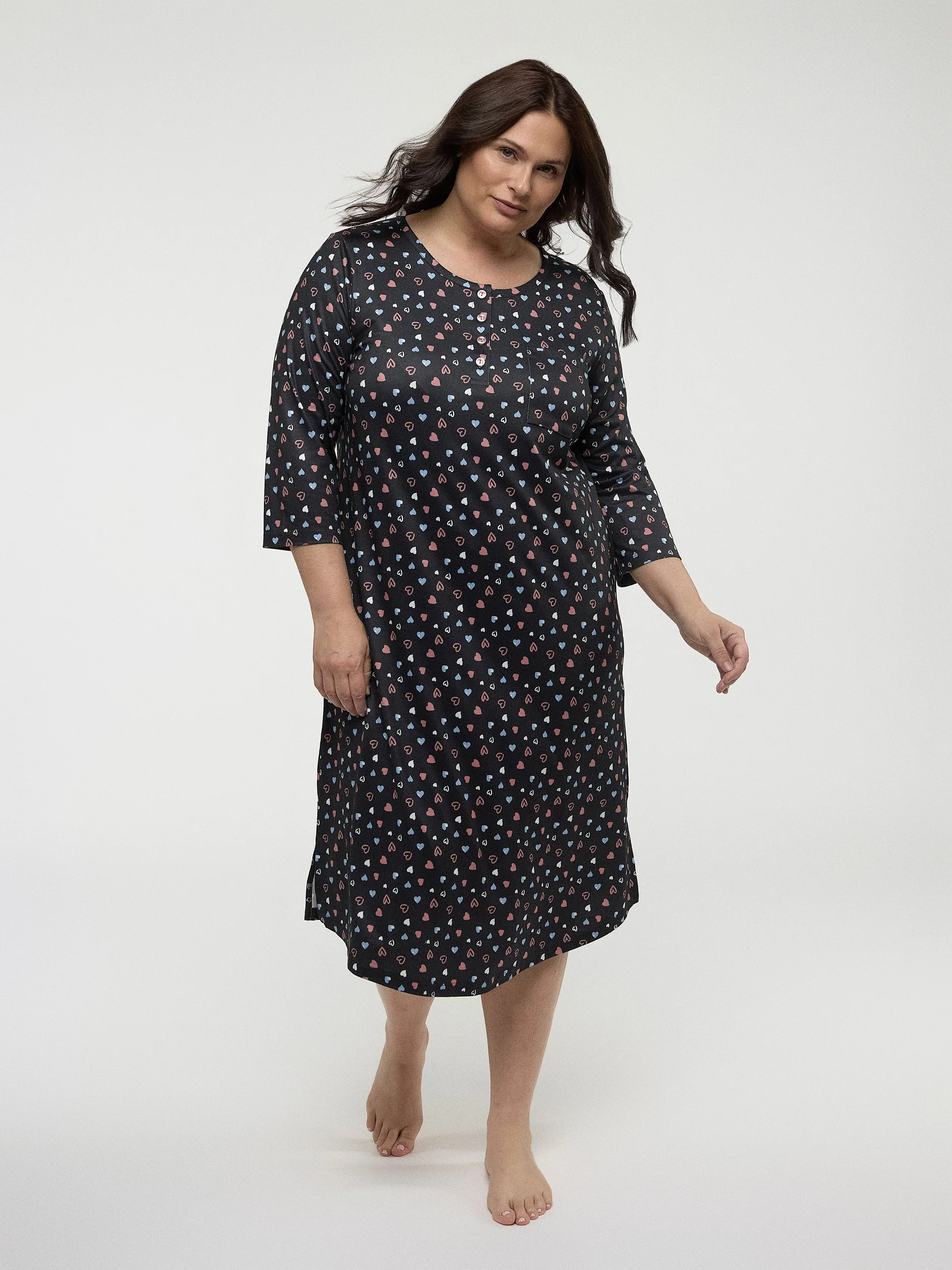 Offrant un imprimé charmant et une coupe adaptée, cette robe de nuit taille plus allie style et aisance. Idéale pour se sentir bien à la maison, elle accompagne vos moments de détente avec douceur.